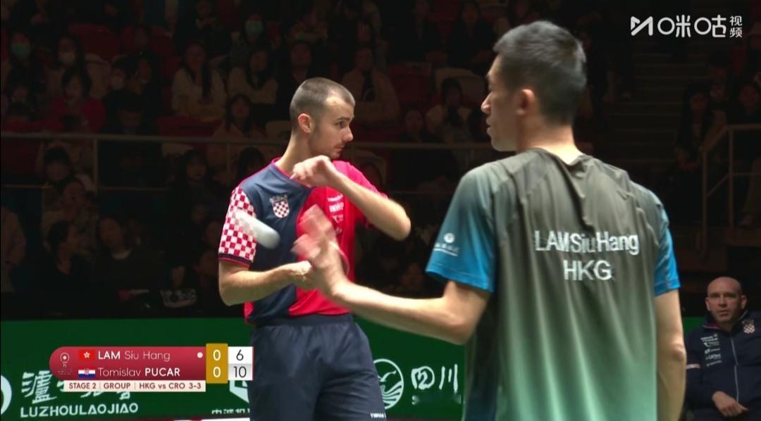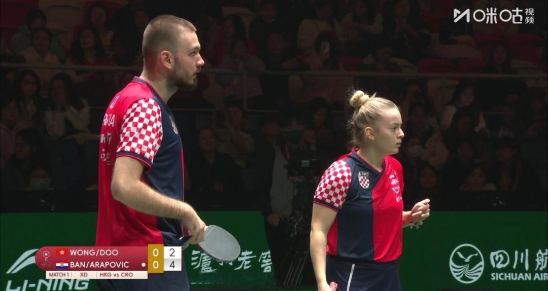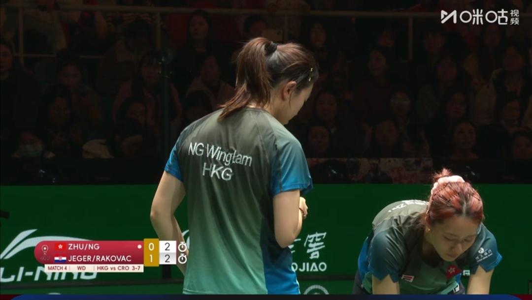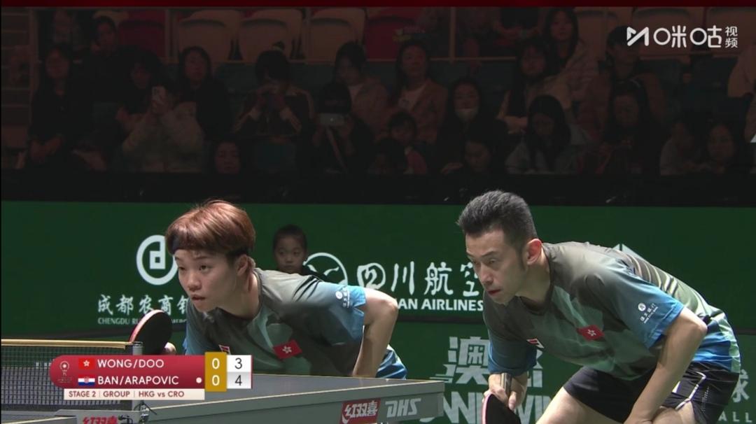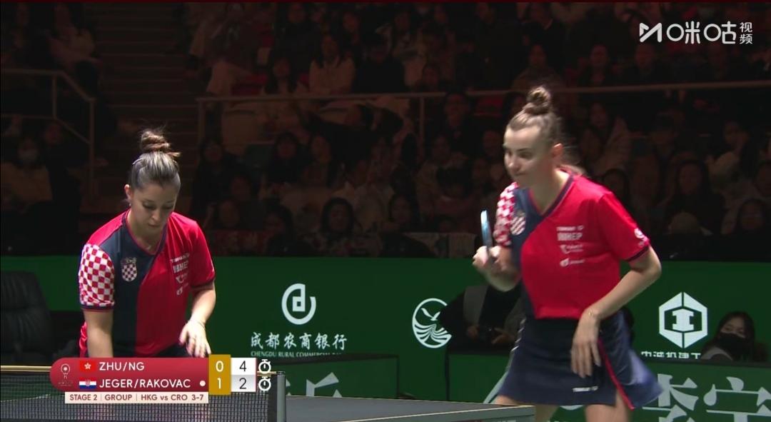 中国香港为晋级淘汰赛而战!瑞典为荣誉而战! 成都混合团体世界杯第二阶段循环赛,第五轮。 图1是四轮赛毕,各队排名。就可知中国香港队第5,瑞典第8老末。 各队的使命不同了! 中国香港队Vs克罗地亚队 第一盘混合双打 黄镇廷/杜凯琹1:2(8-11;11-9;11-13)负克罗地亚沃尔•本/阿拉波维奇。 第二盘女单 朱成竹2:1(8-11;11-6;11-6)逆转胜克罗地亚拉科瓦奇。 第三盘男单 林兆恒0:3(7-11;9-11;4-11)完败于克罗地亚普卡。 第四盘女双 朱成竹/吴咏琳2:1(8-11;11-8;11-9)逆转胜克罗地亚叶格/拉科瓦奇。 第五盘男双 黄镇廷/陈颢桦1:1(11-9;7-11)平克罗地亚伊沃•本/柯克吉。 但中国香港队6:8不敌克罗地亚队! ~~~~~~~ 第5轮10:00同时开打还有 瑞典队3:8负法国队 第一盘混合双打 A•卡尔伯格/C•卡尔伯格1:2(11-9;8-11;8-11)负法国盖茨/帕瓦德。 第二盘女单 伯格斯特隆1:2(10-12;5-11;)负法国卢茨。 第三盘男单 法尔克1:2(4-11;13-15;11-7)负法国A•勒布伦。 第四盘男双 法尔克/卡尔森0:2(5-11;9-11)法国A•勒布伦/F•勒布伦。 瑞典队第8名坐实了!