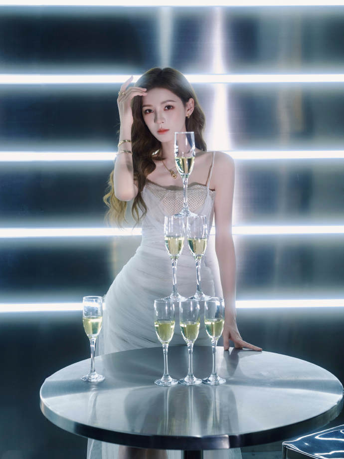 蓝盈莹拍照自带闪光灯救命!蓝盈莹这银色战袍妥妥的发光体! 满缀亮片像把银河穿身上