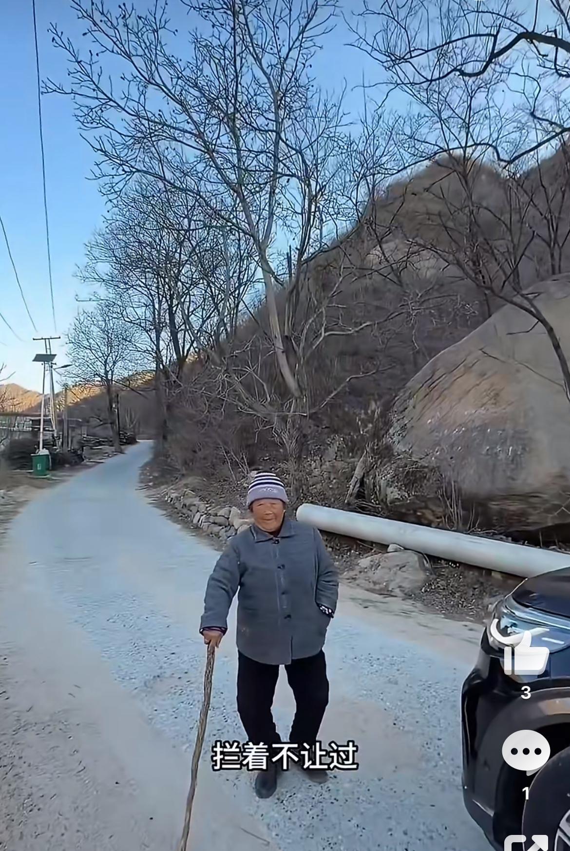 保定网友爆料,在寨沟一个乡村公路上,遭遇老太拦路,收10块停车费。她站在马路中间,拄着拐杖,不准车辆通过,非得停在她指定的地方。也不知道她是啥理由,让一溜的车都停住了。这种走路都不稳的老太,当起路霸,就问可以怎么做治她。路遇老太 碰瓷老太