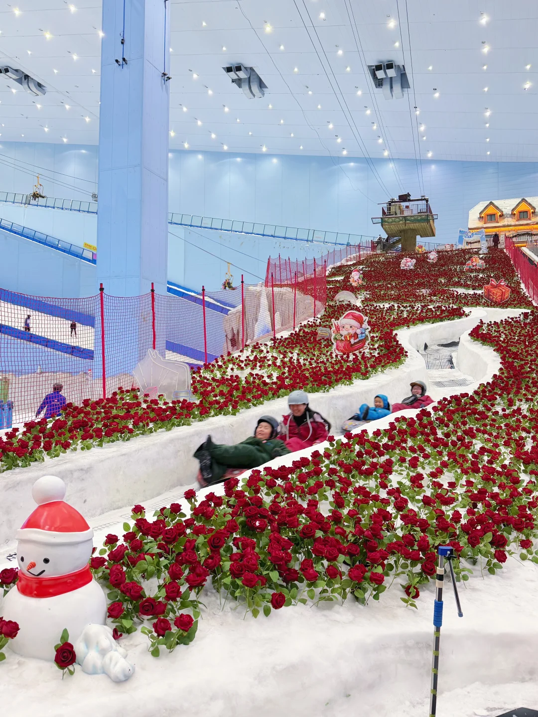 娱雪区:有玫瑰冰川滑道、冰上碰碰车、花海雪圈、探险步道等六大娱雪项目!强推都去体验,玩到根本停不下来~❄️