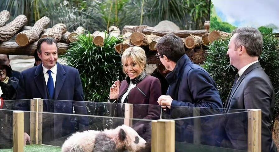 马克龙夫妇到访专程去了四川,夫人布里吉特还去看望了两年前在法国出生的小熊猫,确实
