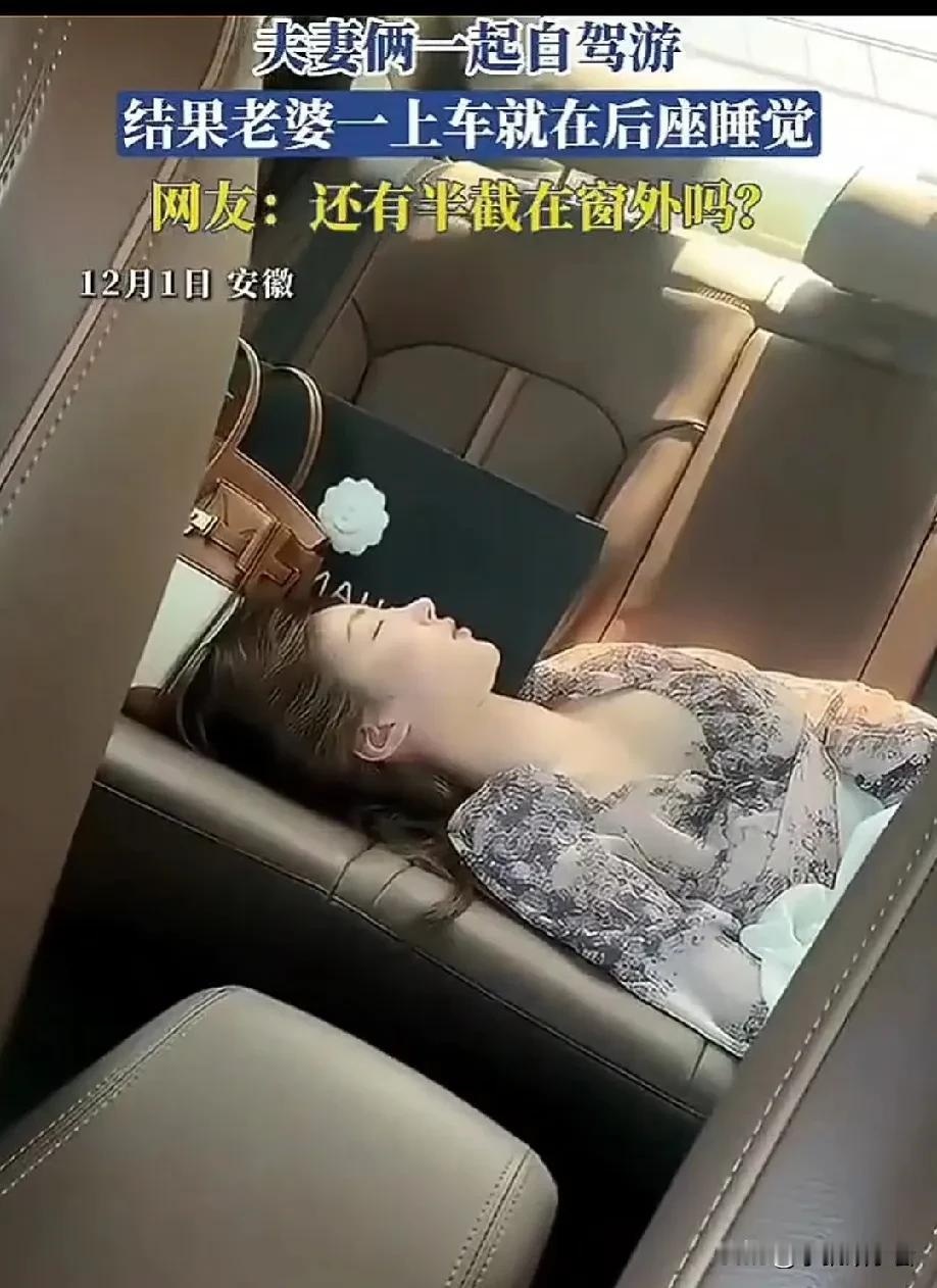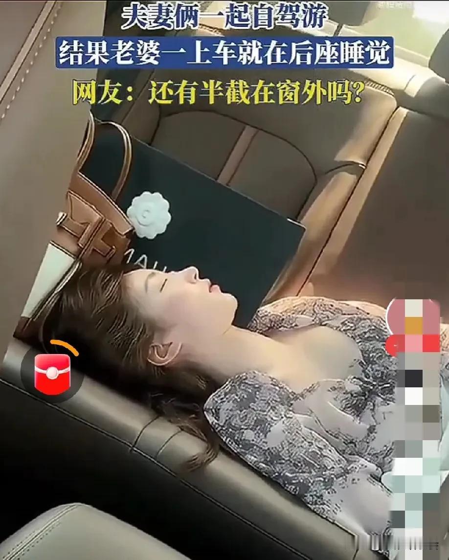 不是一家人,不进一家门! 小两口自驾游,刚上车妻子躺在后排座上倒头就睡,这是有多相信丈夫的驾驶水平! 从丈夫拍摄的视频来看,妻子属于那种肤白貌美大长腿,可网友只看到肤白貌美,并没有看到大长腿! 这下网友不愿意了,给丈夫留言说“还有半截在窗外吗?”苏敏自驾游 退休夫妻自驾行 跟家人自驾游 带家人自驾旅行 带家人自驾 自驾游AA制 夫妻自驾游