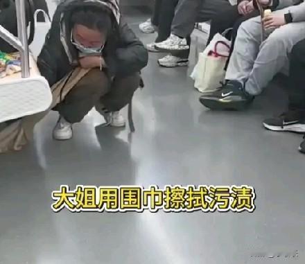 12月4日,江苏昆山,一女子乘坐地铁时,不小心将手中的奶茶打翻,奶茶洒了一地,女子蹲下身子用随身携带的纸巾一点点擦拭,纸巾用完后,看到车座下还有没擦净的奶茶,女子随即解下围巾,又用围巾一点点擦拭,直至擦净为止。 这女子太有家教了!此举被网友发到网上后,引来所有网友的夸赞![赞]个人素质真高!相比那些乱丢垃圾,不爱惜公共环境卫生的人,她的个人责任感真强,绝对是一个非常优秀的人!全民学习的榜样![赞]