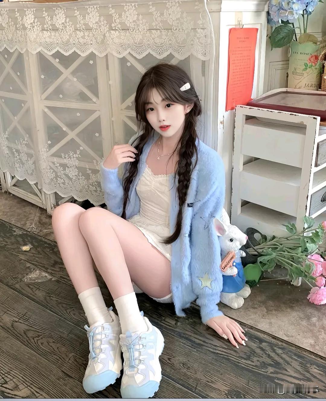 甜美少女风穿搭,浅蓝色毛衣搭配白色连衣裙,可爱又舒适!💕甜妹清纯