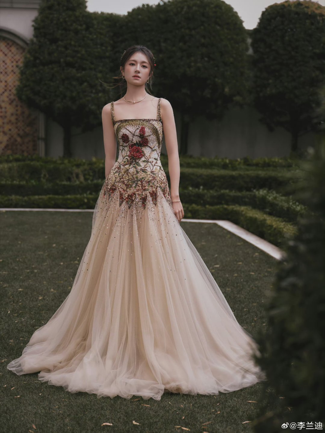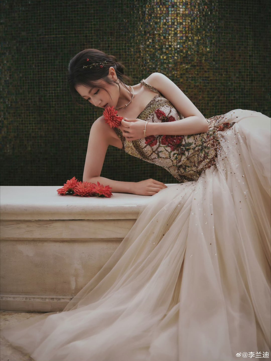 选择李兰迪作为我的毒药和解药 李兰迪这身简直是毒药与解药的完美结合!刺绣长裙华美精致,复古盘发宛如油画少女,美得让人无法抗拒