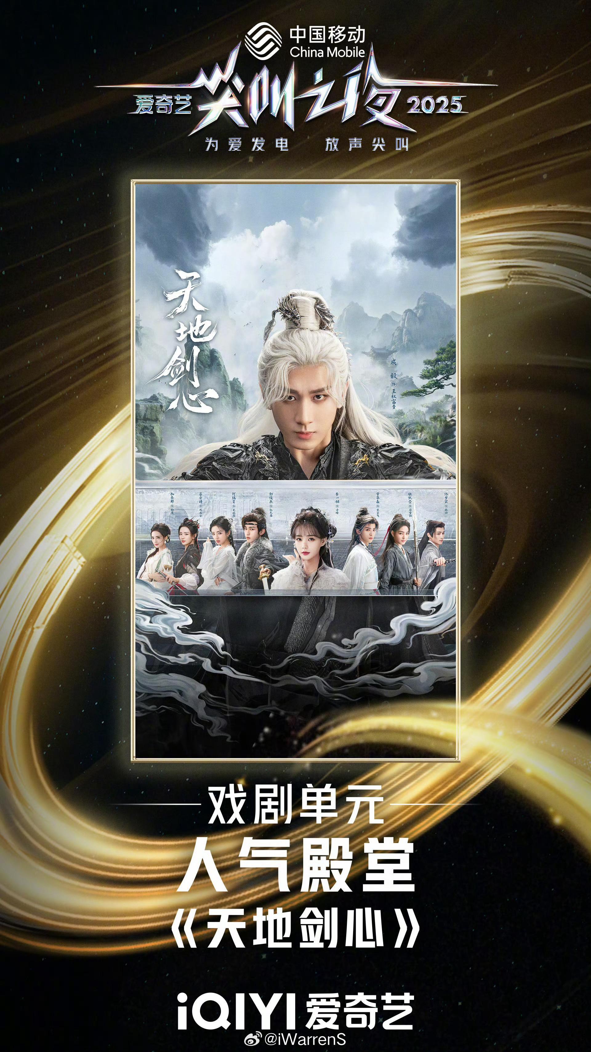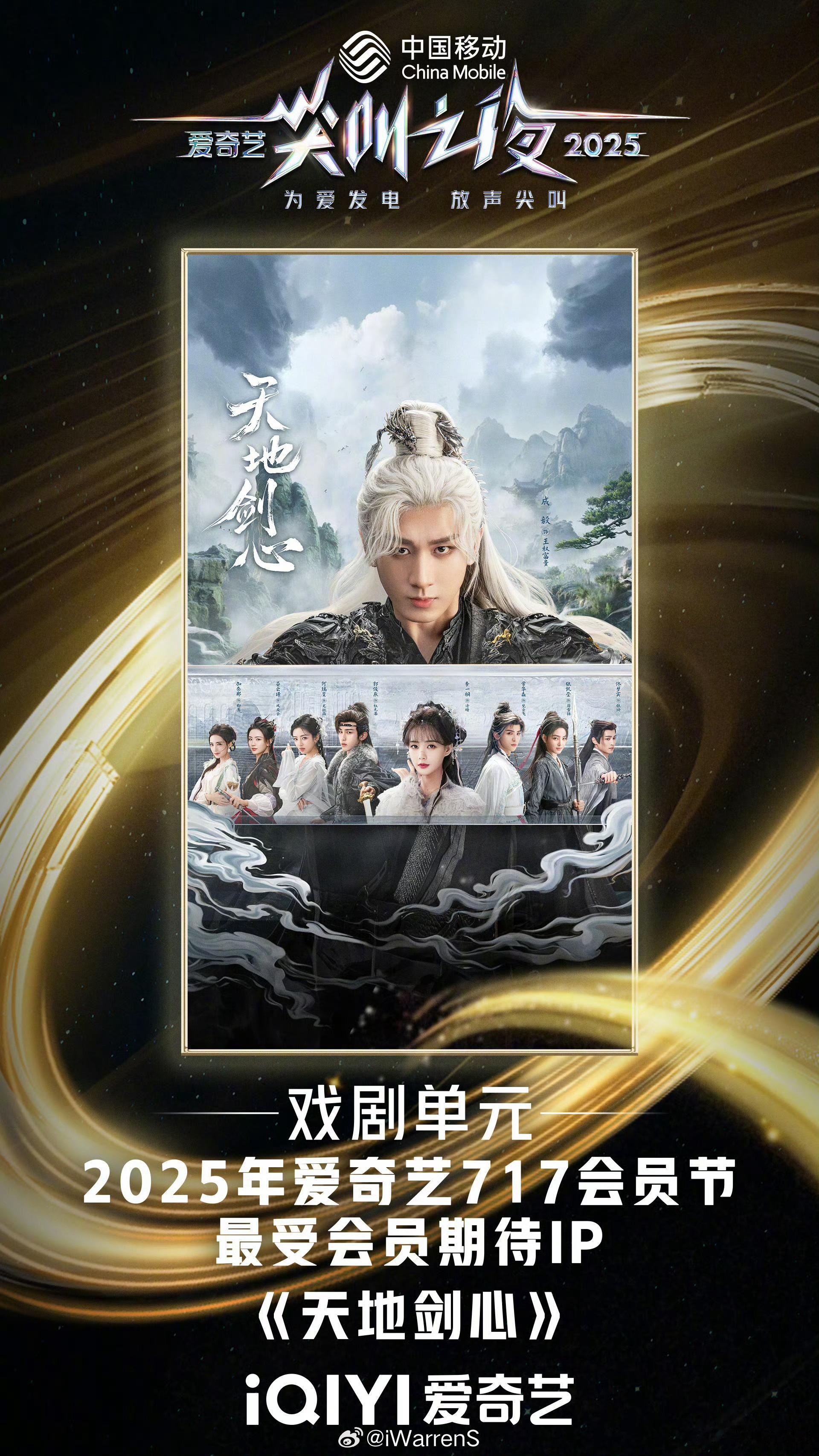 恭喜成毅《天地剑心》获得2025年爱奇艺717会员节最受会员期待IP!同时该剧进入戏剧单元人气殿堂啦!厉害了!2025爱奇艺尖叫之夜荣誉发布