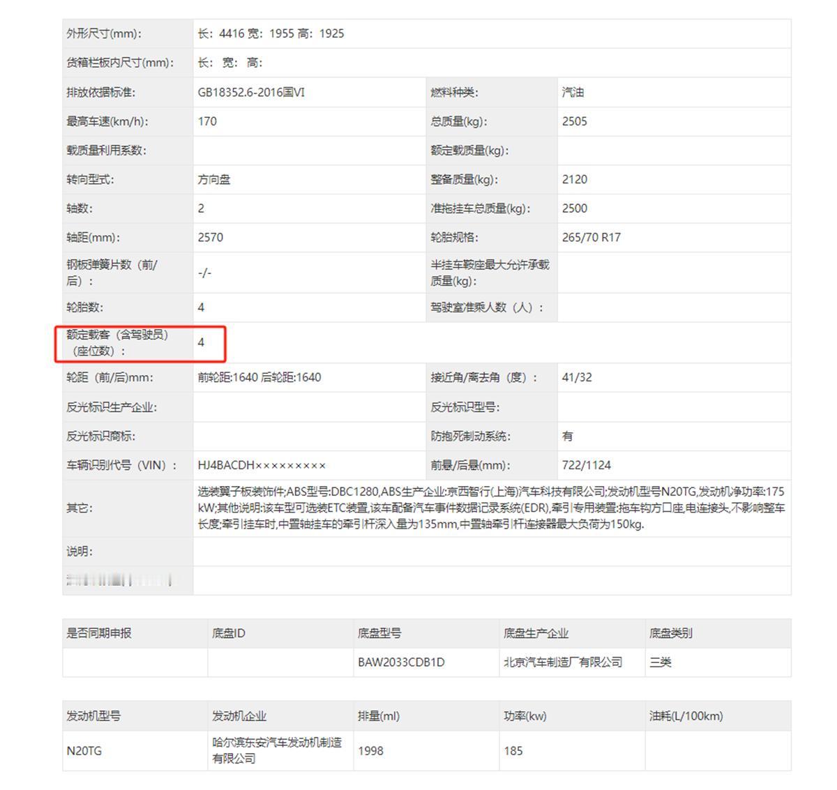 三门版的212 T01要来了,没想到北京汽车制造厂还藏了不少“货”。 在前不久的广州车展上,北京汽车制造厂展出了212的皮卡版还有5门的软顶版本,还有插电混动版的212 T01,没想到还有硬菜被藏起来了,没有在车展上展示,这就是三门的212 T01。 不过现在已经在工信部最新一批申报目录中申报了,这也就意味着距离上市不远了。 4座布局,申报信息中没有提及车顶是否可拆卸,但是从造型结构来看,预计是可拆式设计。4416mm 的车身长度,2570mm的轴距更为紧凑,这也就意味着会有比5门版更好的通过性,越野能力也将进一步提升。 你别说,魏桥接手之后,212这盘棋是被激活了,玩的越来越好了。【来自懂车帝车友圈】