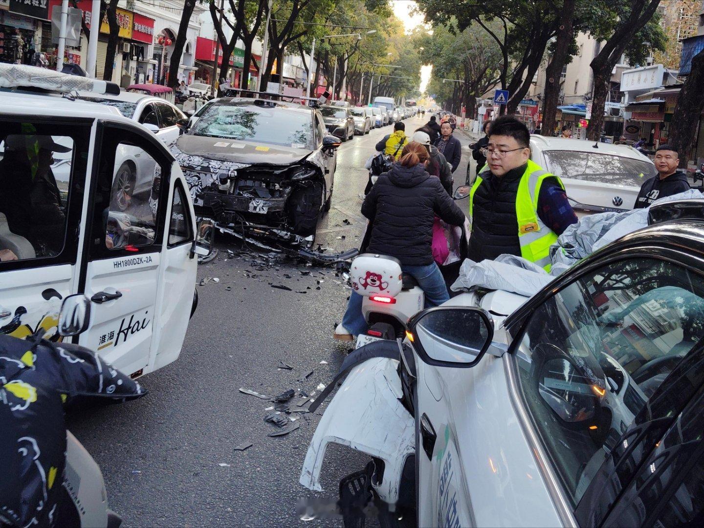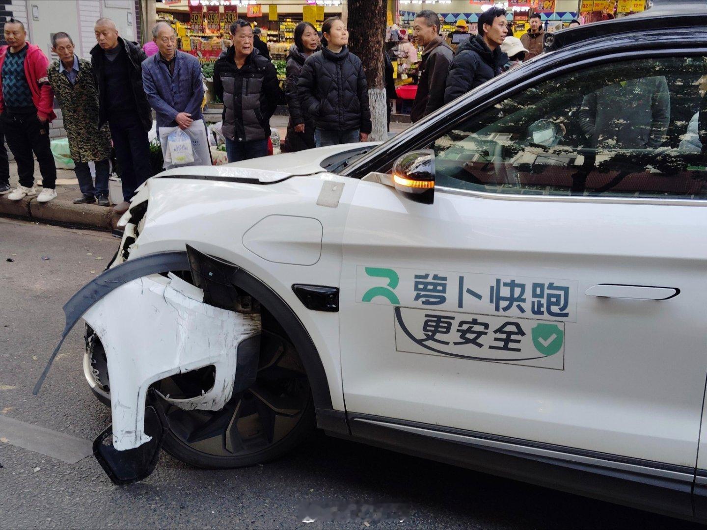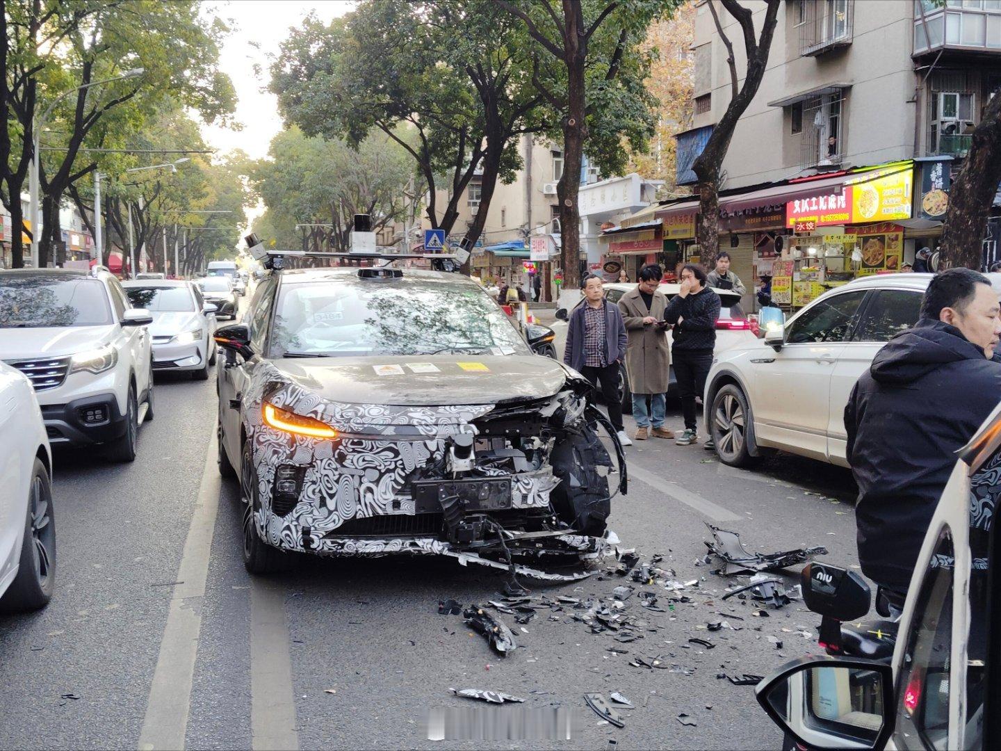 这是萝卜快跑和哪家伪装测试车撞了?不知道算谁的责任?新能源汽车