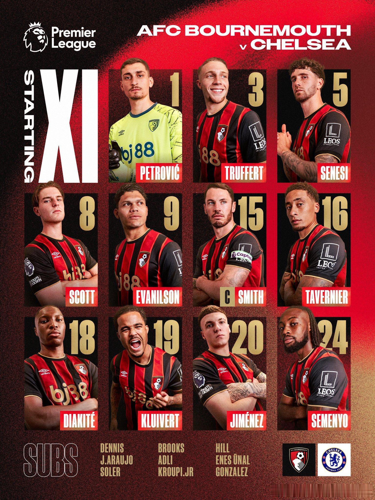 双方首发:帕尔默重回首发,能否带领切尔西重回胜利轨道?伯恩茅斯首发:1-彼德罗维