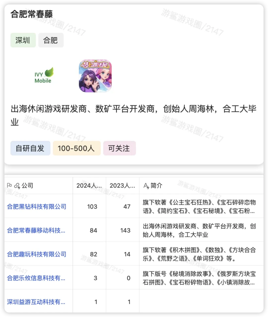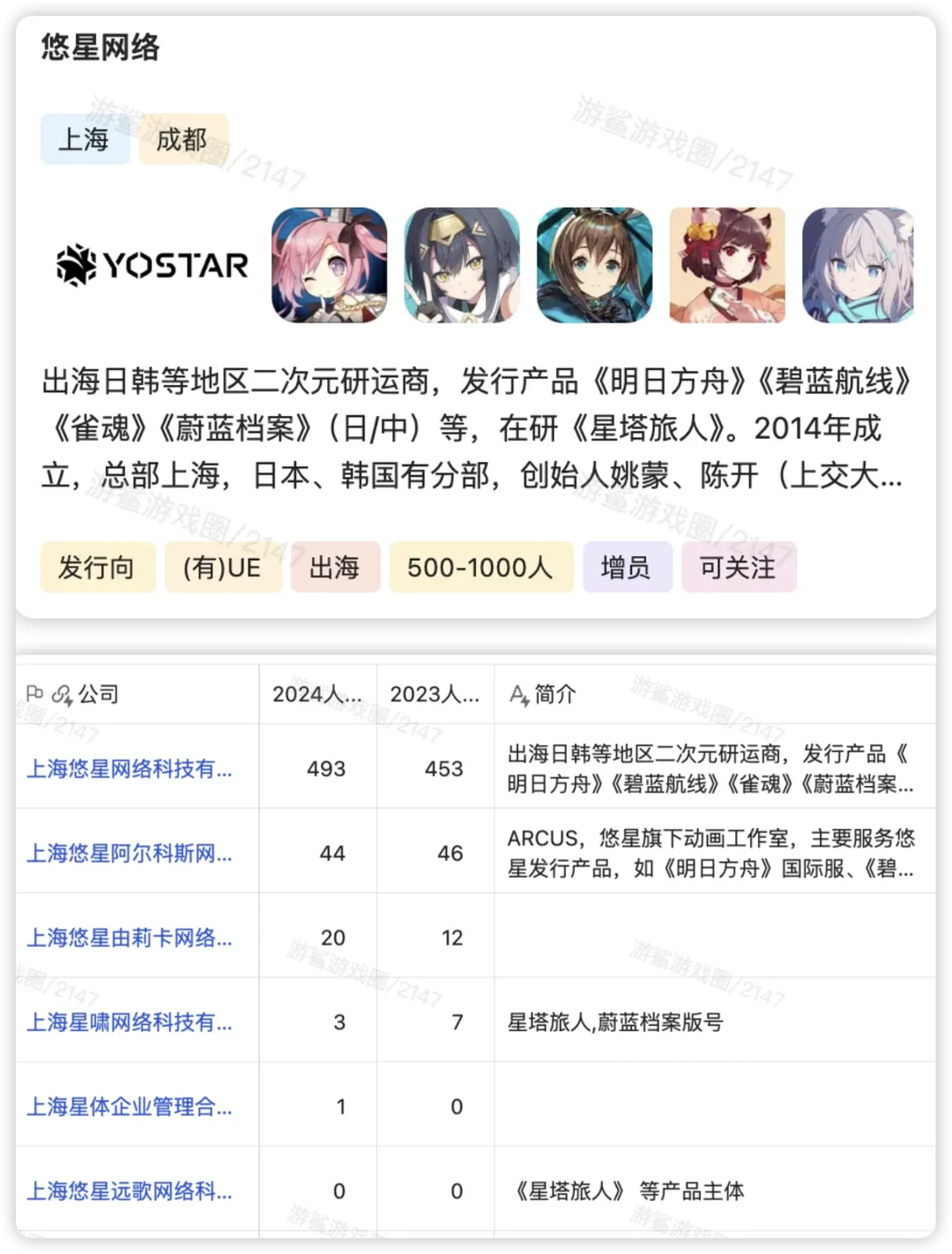 星铁、R-project等产品的主体海渊城增员223人,24年末1323人;