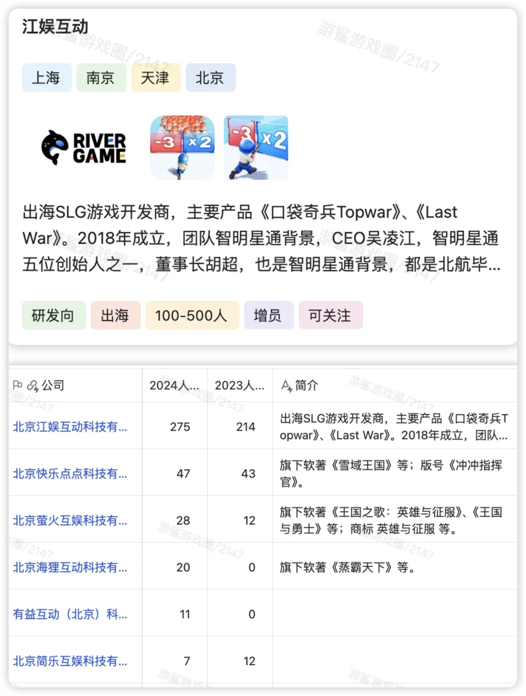 其中腾娱增员3290人,24年底6581人;大连北境增员102人,24年末255人。24年游戏行业虽然整体仍是减员,但相比23年好了太多,这其中腾��功不可没。��