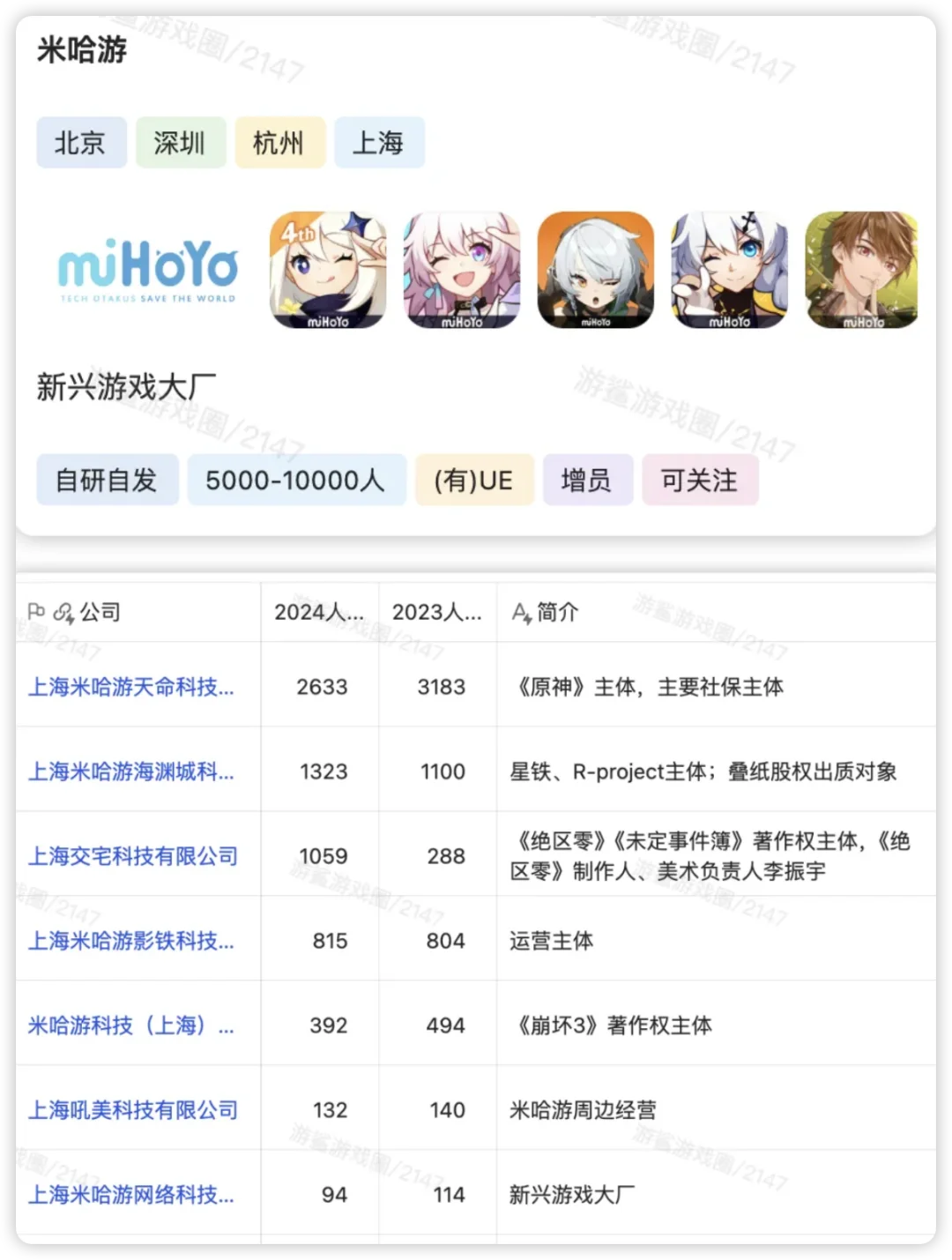 [向右R]米哈游增员354人,24年底6677人(不包含新加坡、美国等海外分部员工数)。