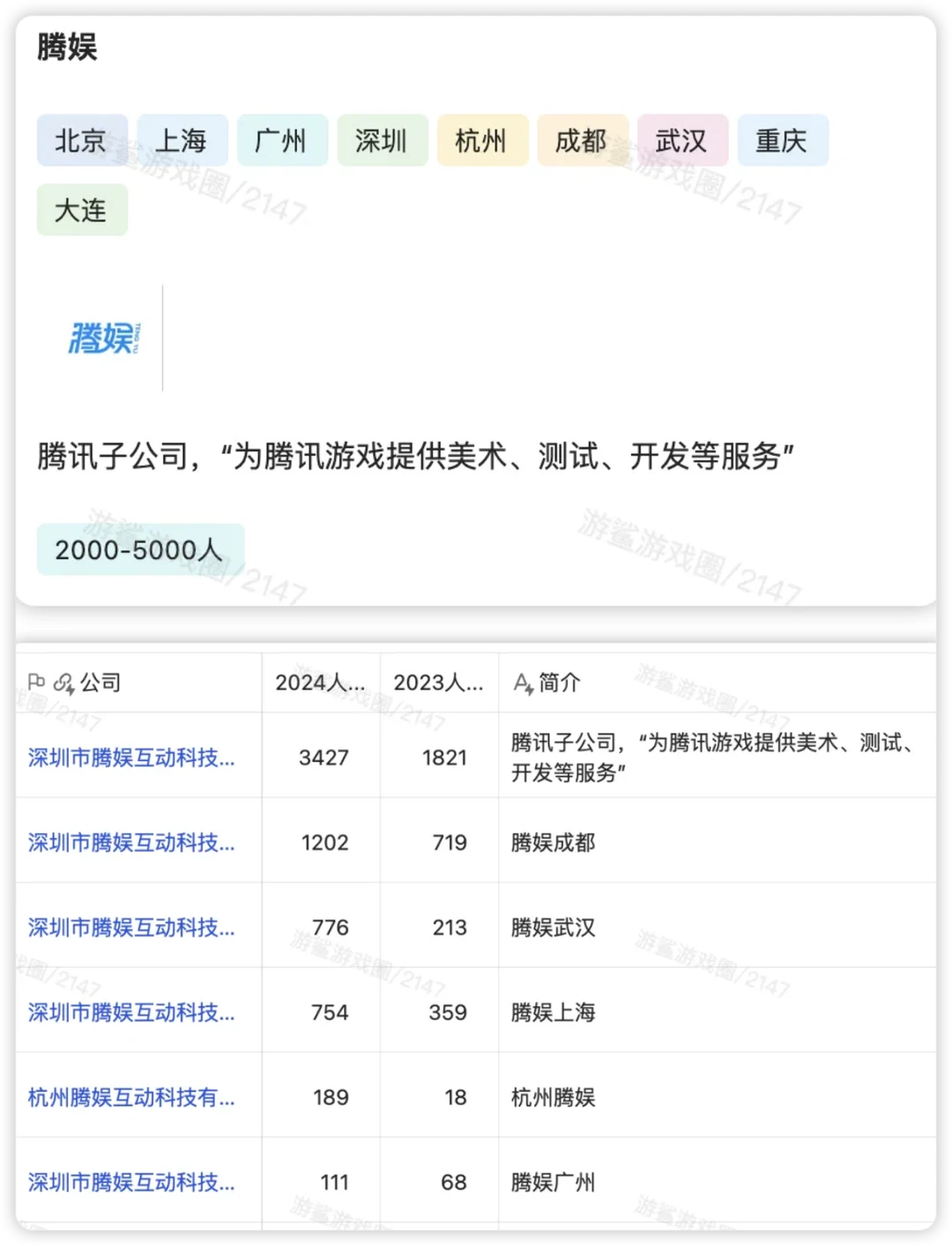 [彩虹R]腾讯IEG的两个内包子公司腾娱和大连北境共增员3392人,24年底6836人。