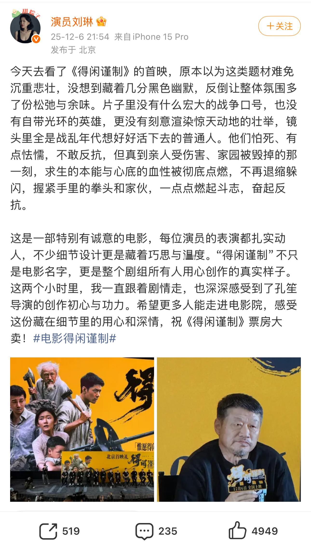 得闲谨制导演刘天池和演员王雷演员刘琳大夸得闲谨制。这部电影真是口碑爆表,从业内到影评人到网友 不同的角度超级高的评价!