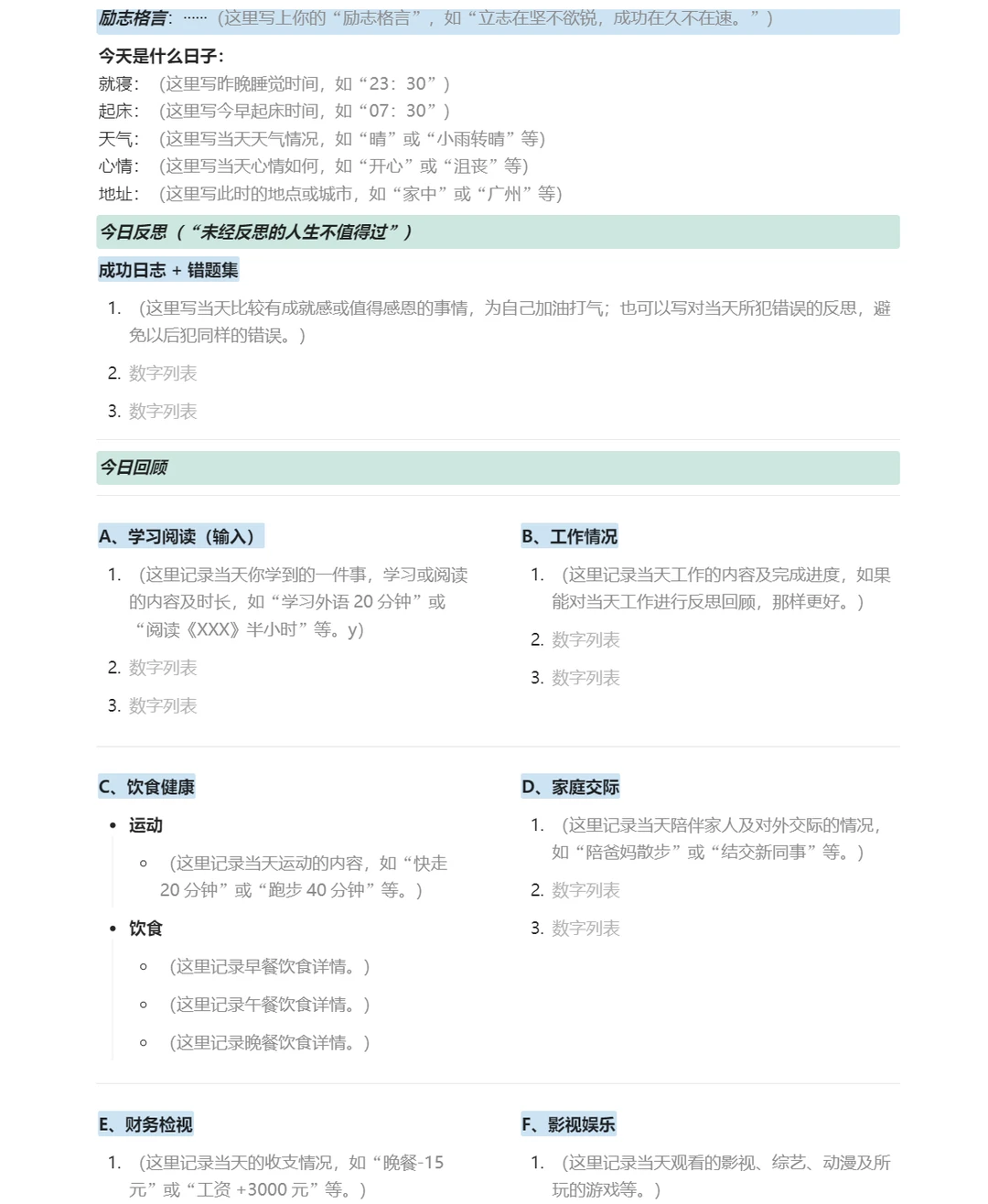 我用过很多复盘的模板,目前觉得这个比较清晰,很适合我。附上图片了。