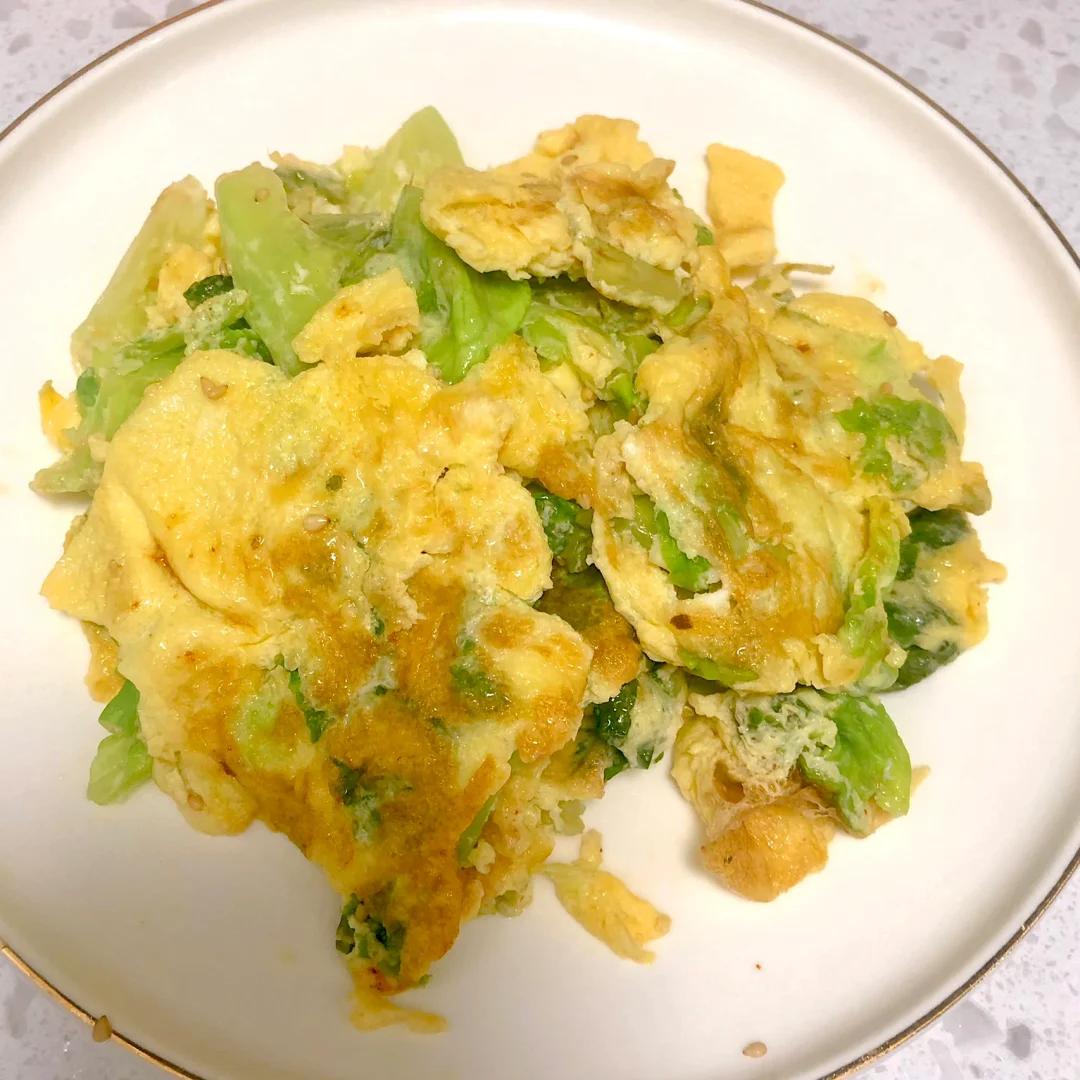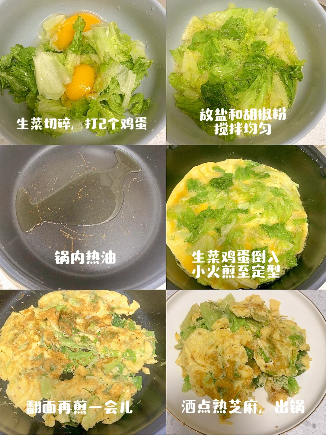 🥬今天做个生菜鸡蛋饼,高蛋白低碳水。 减肥的姐妹必吃,好吃不腻[赞R],简单易做! 👉🏻食材:鸡蛋🥚,生菜🥬,盐,胡椒粉 👉🏻做法: 1⃣️生菜切碎,打入2个鸡蛋; 2⃣️加入盐,胡椒粉少许,搅拌均匀; 3⃣️锅内热油,倒入生菜鸡蛋煎至两面金黄; 4⃣️撒点白芝麻即可出锅。 是不是超级简单,5分钟就能搞定,好吃不怕胖🤭