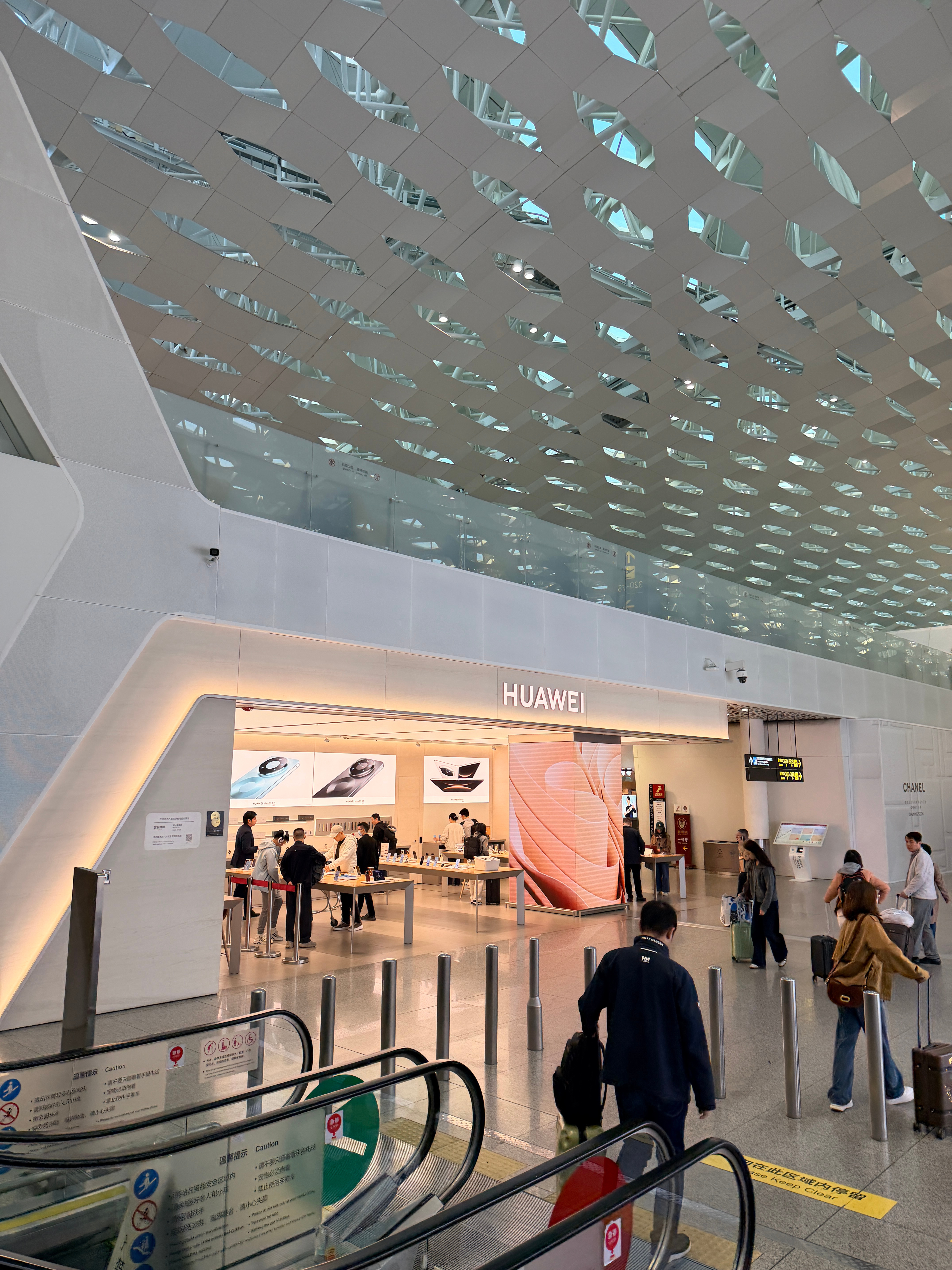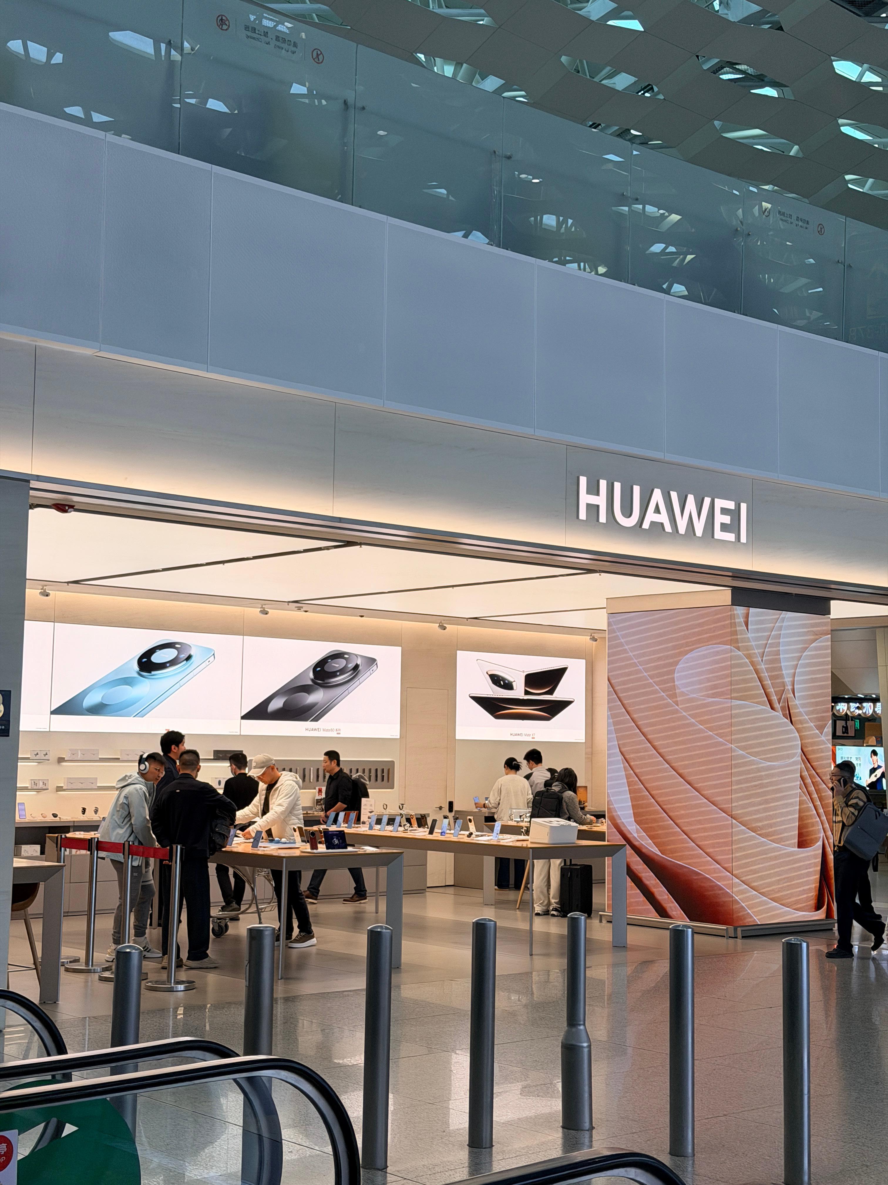 这么早就在看手机了每次经过机场的华为店人都不少