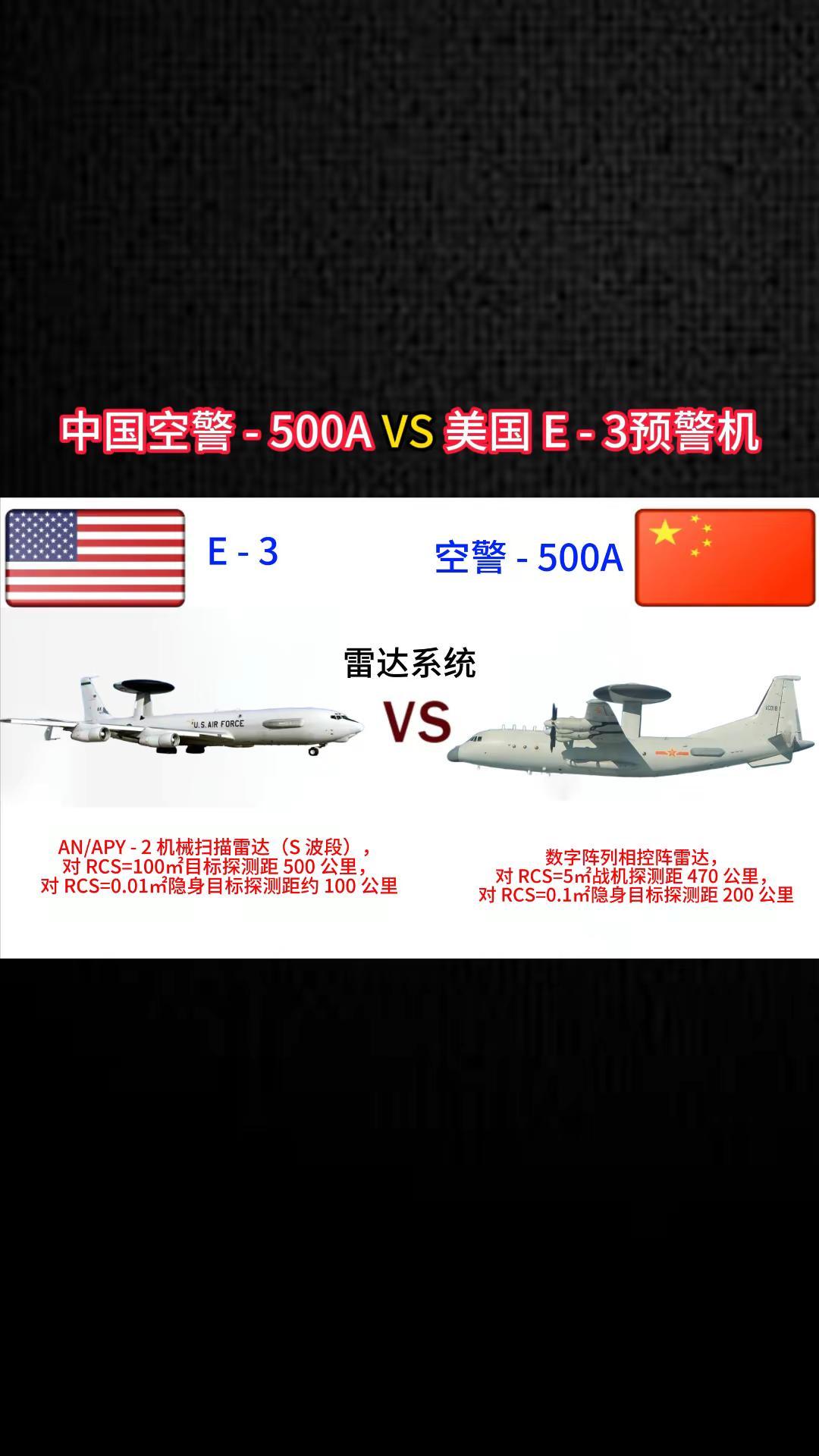 中国空警500A VS美国 E3预警机。军事科普 军事科技 军事爱好者 军事迷