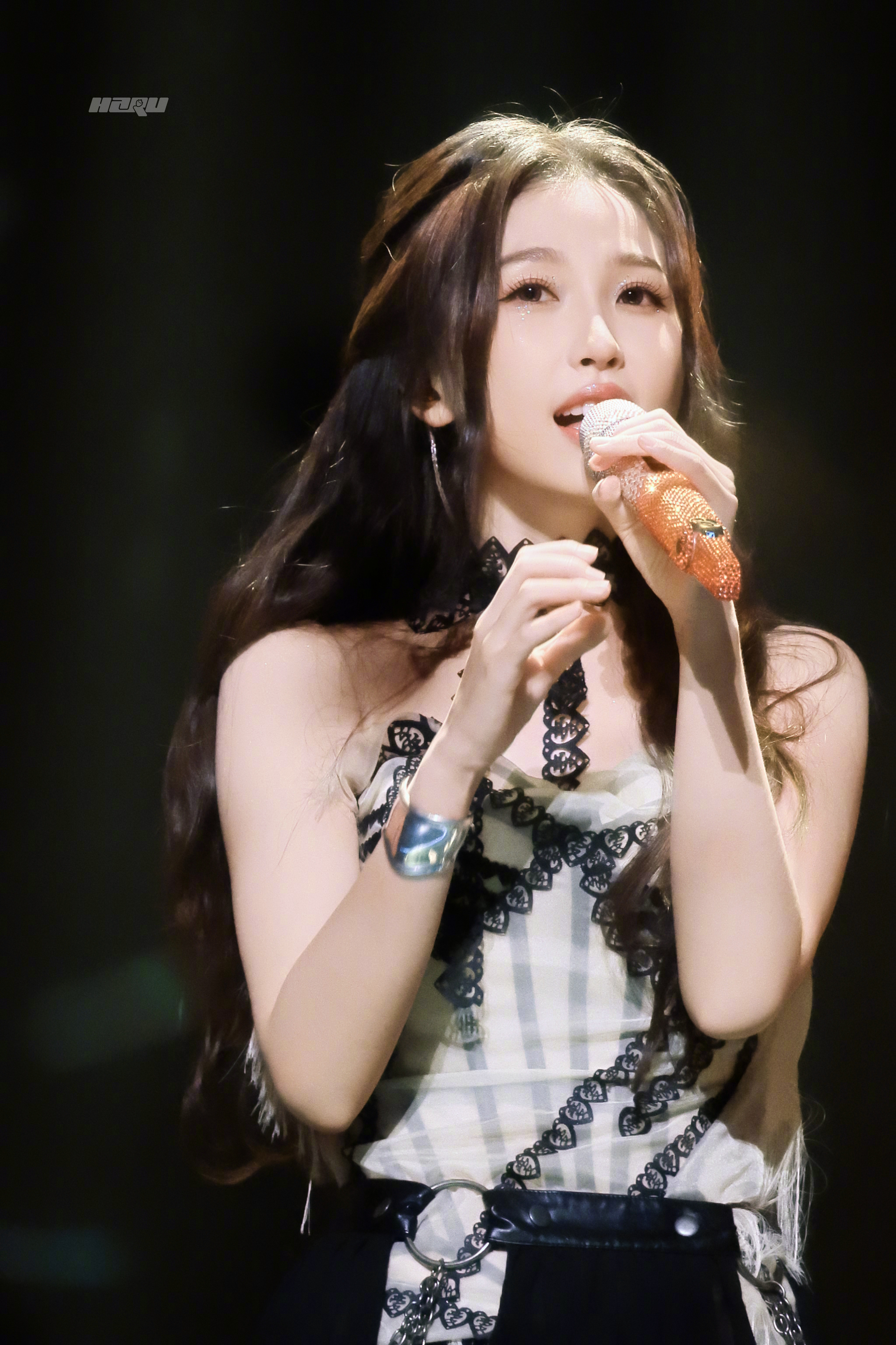 虞书欣蹲在舞台边擦眼泪的瞬间,第一排粉丝的灯牌都晃了,唱到第12首歌,她