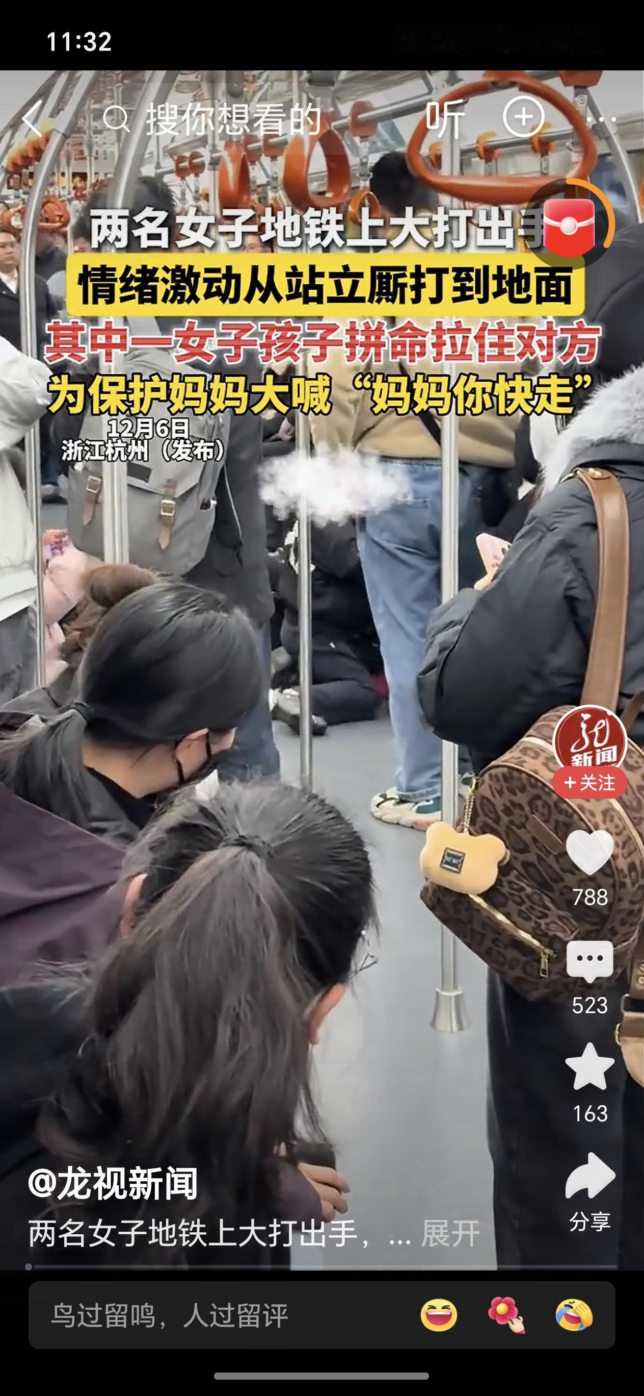 孩子拼命保护妈妈近日杭州地铁上,两女子疑因座位扭打,从站立打直到厮打到地上大打出手,一女子带的小孩拼命拉住对方保护其妈妈,地铁上人们纷纷躲避,无人拉架劝阻! 地铁上人们的冷漠让人很无语,两女子当着孩子面扭打,对孩子影响太坏了!