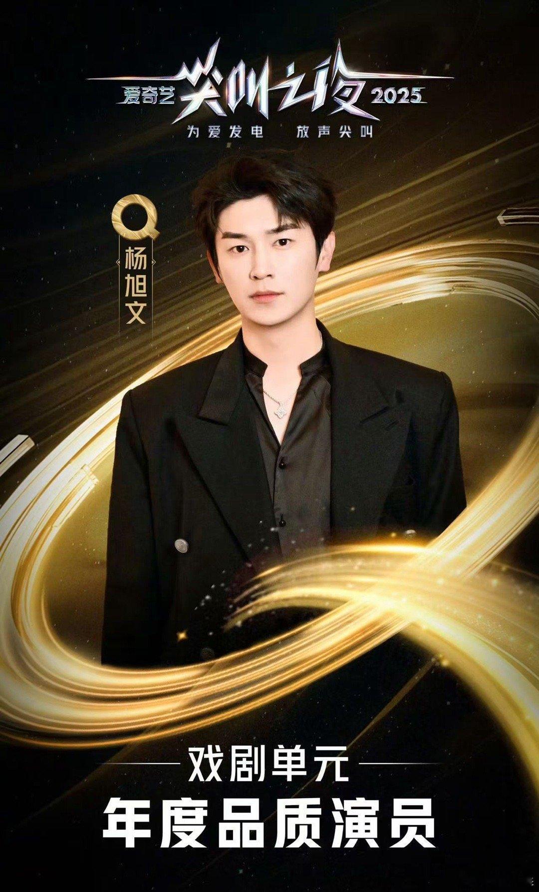 杨旭文领奖国外领完国内领 国外领奖时全英交流、临时编获奖感言,气场与口才并存,回国又在尖叫之夜收获年度品质演员,行程满满,荣誉不断。