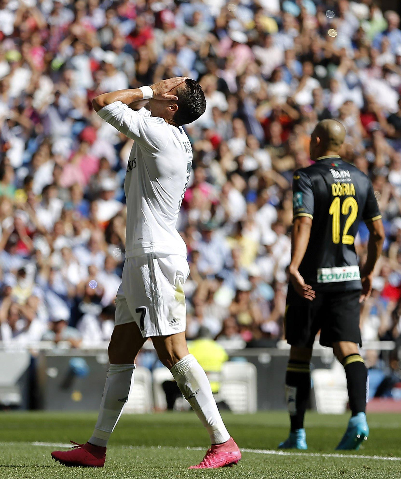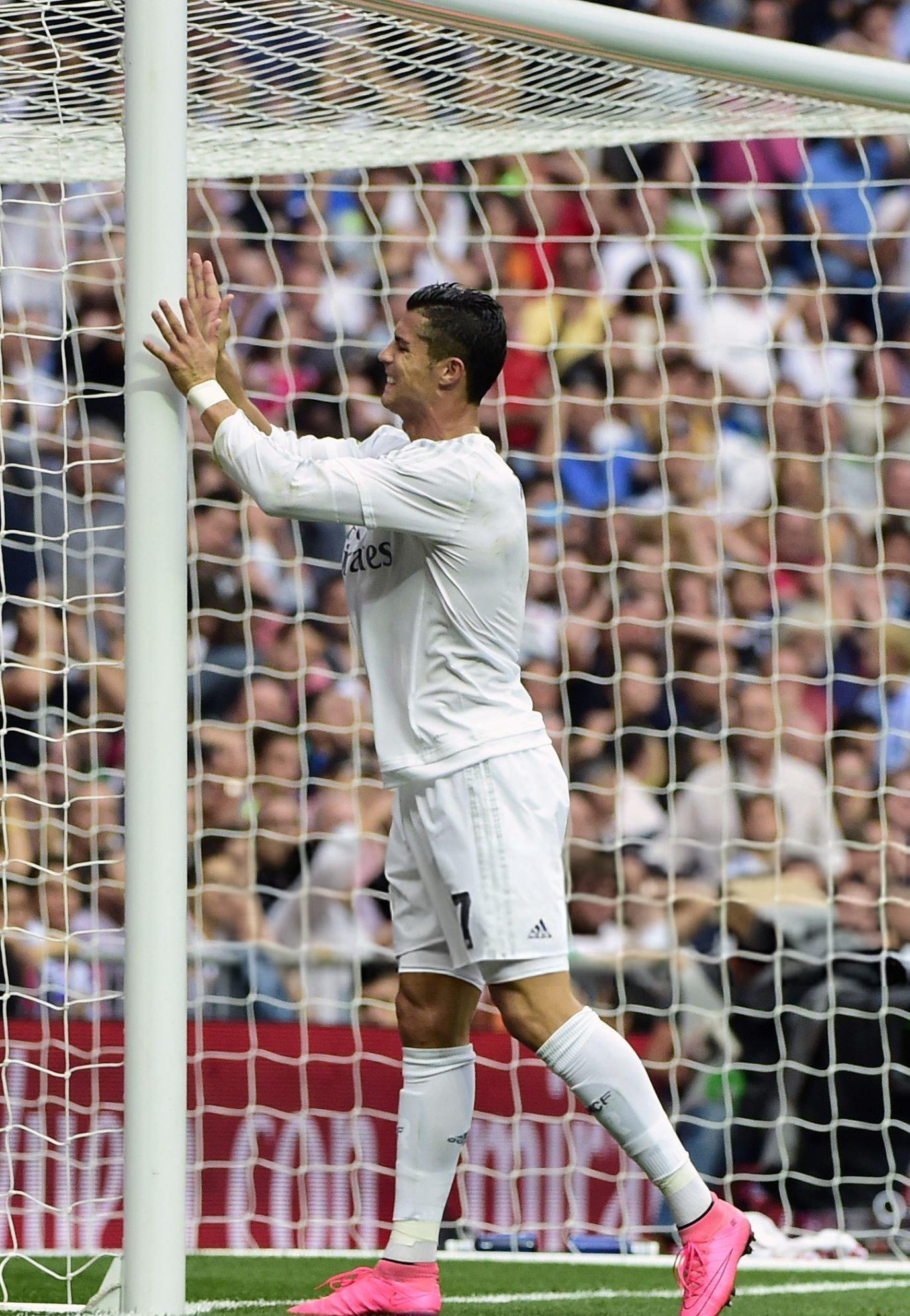 C罗c罗 懊恼地捶门柱但进球总会来的