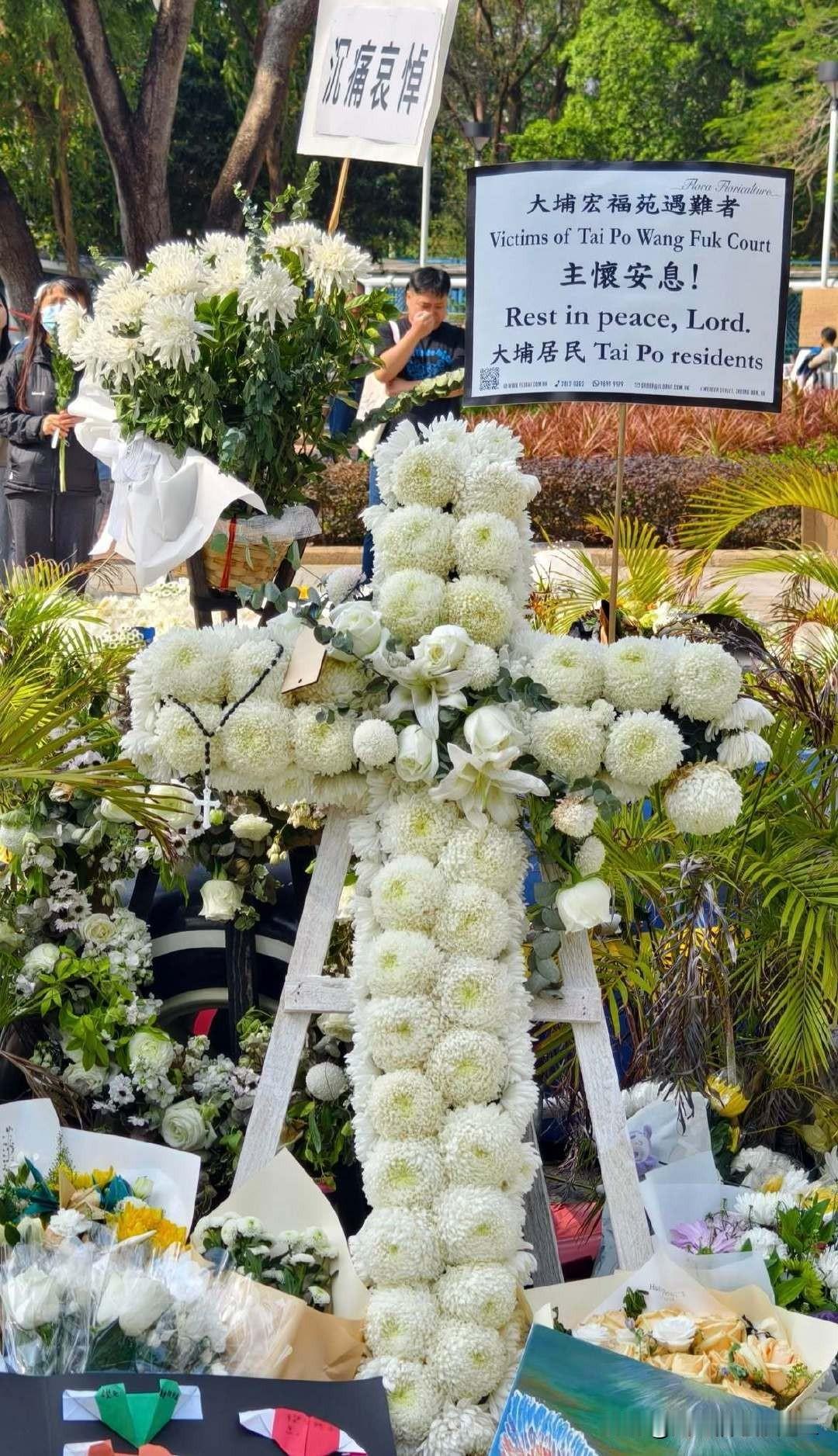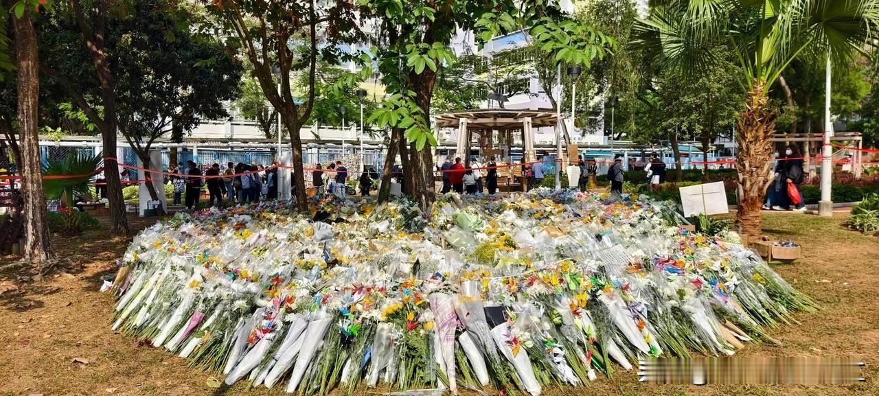 香港宏福苑大火发生后,一旁的广福休憩处成为悼念区,今日最后一天。