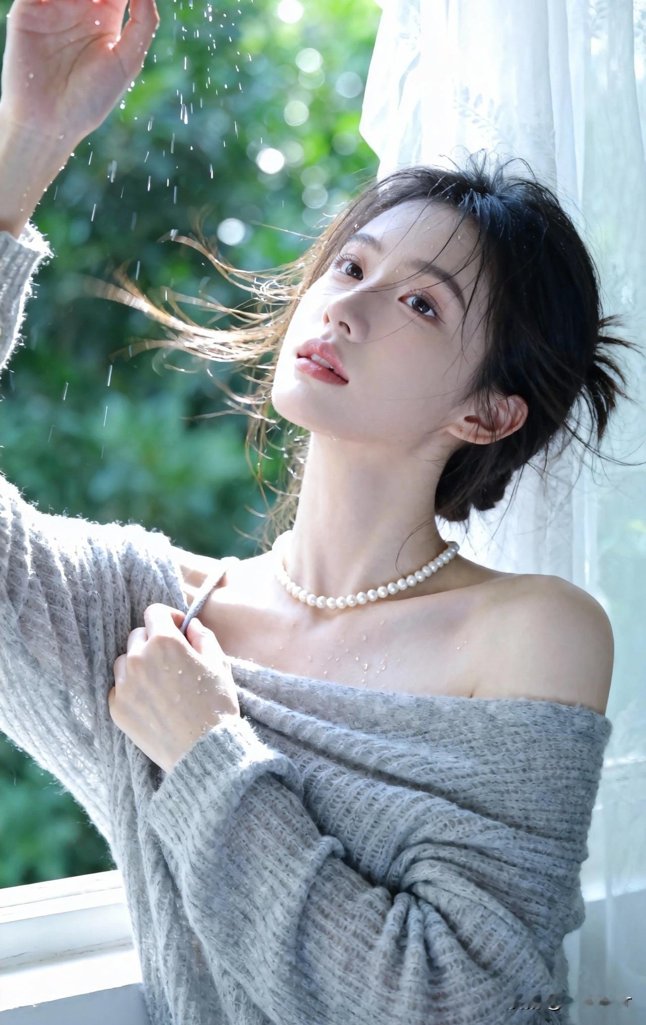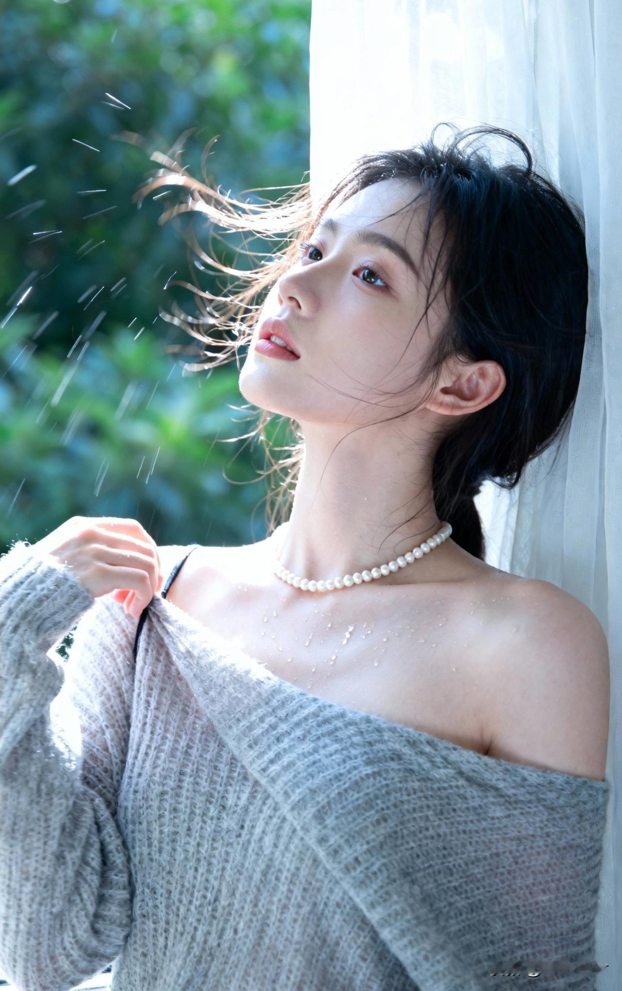 珠光玉露湿香肩,微风拂面意悠然。