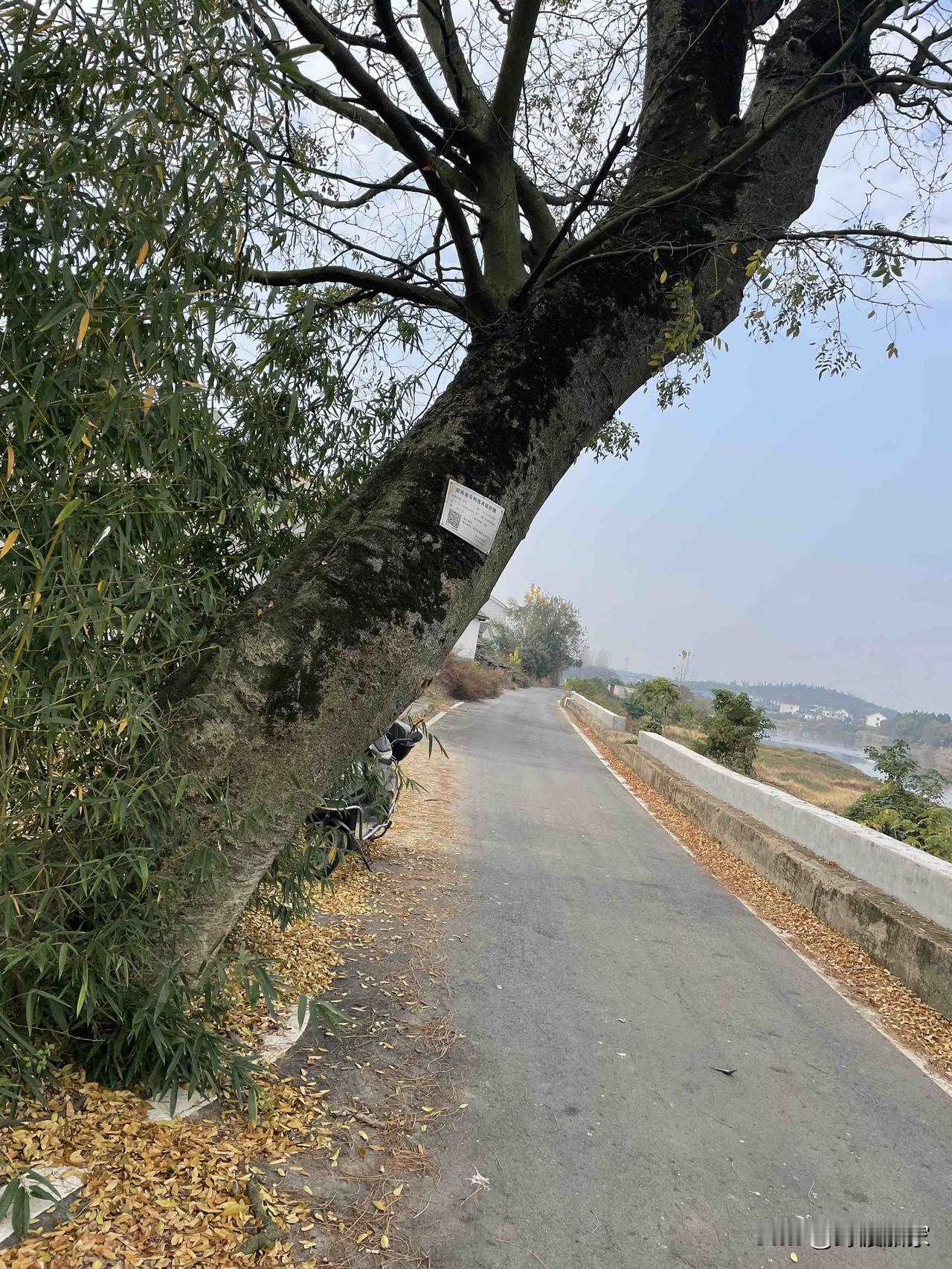 你见过这么傲娇的大树吗?以前听说过有拦路虎,今日方见拦路树! 它斜横道路之上,过路的人车都得为之低头,侧身而过。人们为什么不清除这个路障?只因它年纪大,已有一百二十八岁高龄了,政府立牌禁示砍伐,加以保护。 当地人说此皂荚树有灵,在树旁设了一个小祠,以备人们祭祀。
