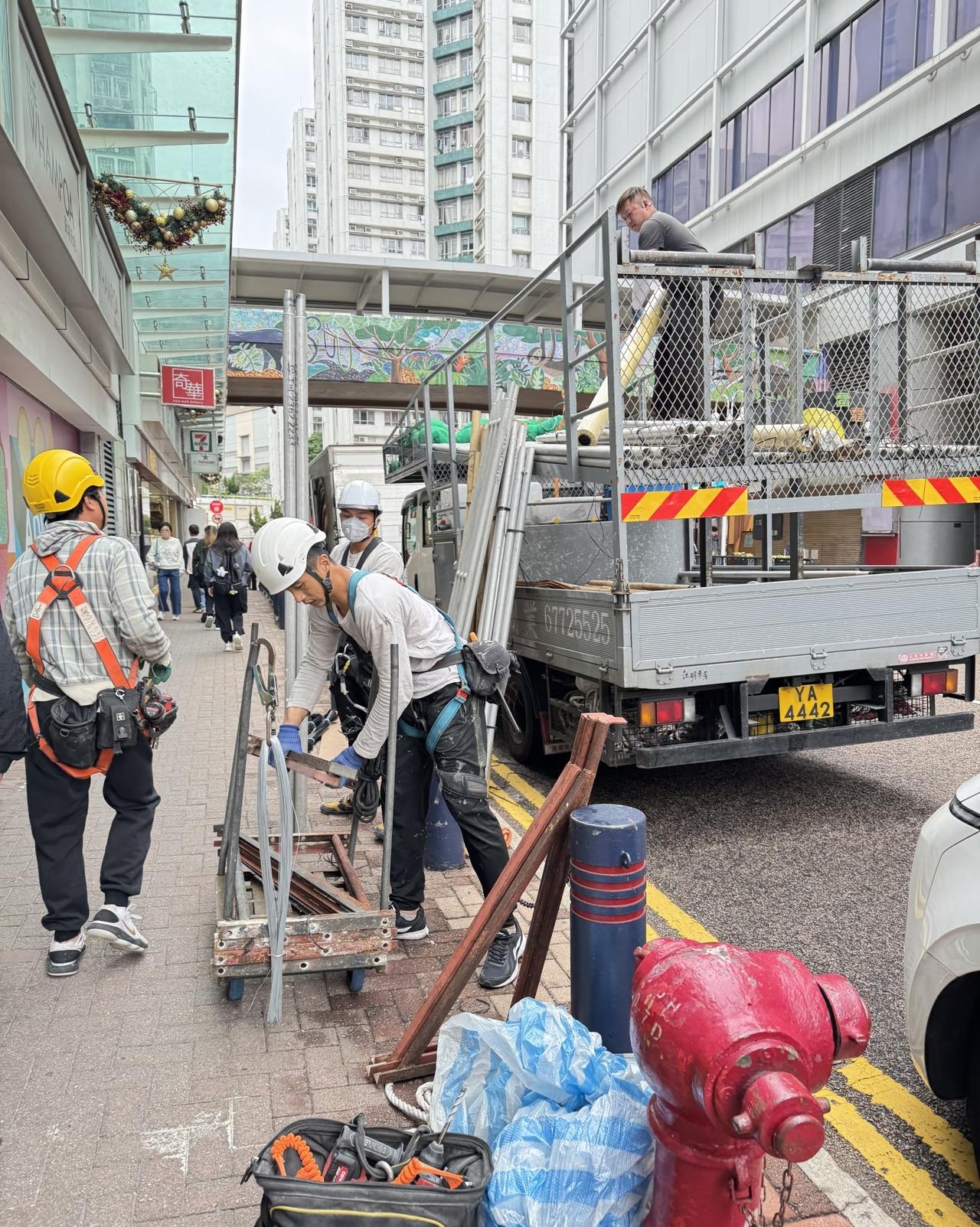 香港竹棚这次可能真的要遭 亲眼看着工人把卸下来的竹架搬上车 再从车上搬下来钢铁架 也算见证了香港搭棚历史的更迭了😂