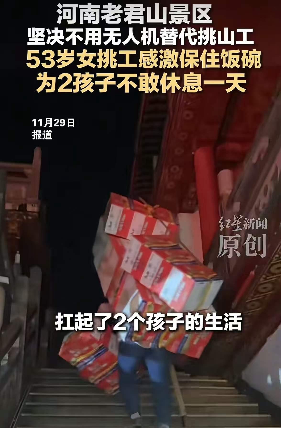 吵翻了!河南老君山景区称坚决不用无人机替代挑山!工作人员说:“他们在这里工作几十年,一旦失业,很难再找工作!”但有网友认为,这是没苦硬吃!本可以科技改变生活的,却打着为他人的创造就业口号,这是因循守旧,顽固不化! 今年9月的清晨,雾还在山腰打着结,河南老君山景区的栈道上,挑山工们的身影像一条条坚韧的拐杖,支撑起这座山的文明与记忆。53岁的雷玉琴在3.5公里的山路上走了11年,一天也不敢休息。她的肩膀像把老旧的木凳,被岁月捶打得圆润而有分量。她对旁边的游客说:“孩子,走这段路,看的都是人心的厚度。”说完,她抹一把汗,继续前行。 网友的质疑像风一样穿过山林:既然有无人机和机器狗,何必让人类挑着山?景区方面的回应却并不急着辩解,而是把话语说得更具温度:“他们在这里工作几十年,一旦失业,很难再找工作。”这不是简单的岗位保留,而是一份对生活的坚持,是对这座山与人之间情感的维护。 在这场“科技替代”与“人情守护”的拉锯里,景区宣称:无人机和机器狗确实有配备,但保留挑山工,更多是为了饭碗的稳固,也是对这座山的“代言人”情感的尊重。有人说这是守旧,有人说这是仁慈。但真正的本质,是在寻找一个两难之间的共生路径:科技能带来效率,人情能带来温度。 雷玉琴的故事并非孤例。她当年是山上唯一的女挑山工,靠着自己的双肩扛起两个孩子的生活。每天3.5公里的山路,1800多级台阶,她一走就是11年,一旦体力透支,后面的家庭就陷入停摆。她透露,家里并不富裕,但家人始终相信:劳动是最稳妥的尊严。她的孩子们在山下读书,望着母亲的背影长大,心里明白:这条路是他们的“饭碗”,也是山的“传承”。 也有游客和网民的声音,他们希望科技更快地替代体力劳动,让效率和安全成为主角。也有人指出,若真能让挑山工转岗、掌握无人机操作或机器狗维护,或许才是最理性、最温和的解决办法。问题在于现实的断层:许多山区劳动力文化程度不高,培训成本、技能获取的门槛,往往被“时间紧张、成本高昂、机会稀缺”这几个字压住,成了阻断代际升级的绊脚石。 于是,我们需要一些更具行动力的方案,真正把“保护老员工”的善意,转化为“让更多人受益的升级路径”。可以考虑的方向有:建立山区职业再培训基金,政府+景区+企业共同出资,设立分阶段的技能提升计划,优先帮助现有挑山工转岗,如无人机操作、路线巡检、导览讲解、应急救援等岗位。 推出“山路守护者”激励机制:保底工资+绩效激励,确保在培训期间和转岗初期的收入不下降,降低他们对变化的焦虑。 设立“山线上下双向培训”模式:在山脚设培训点、在山顶设演练场,借助夜间无人机示范、远程指导等方式,降低培训成本,让文化程度不高的工人也能逐步掌握新技能。与高校、职业学校合作,做定向培养,培养一批“山地服务+科技应用”复合型人才,既保留山上人文底色,又让科技进入生活细节。 这些举措并非要以牺牲传统为代价,而是在尊重劳动者、尊重历史的前提下,让科技成为他们的工具,而不是新一轮的排斥。雷玉琴在山路上走过的每一步,都是对“劳力即尊严”的最好注解。她说:“我并不排斥新东西,只希望有办法让孩子们在这里稳定地生活下去。”这句话,像山风穿过松针,清亮又有力,戳中了许多人的心。 当我们站在读者的角度,看到这场讨论,最值得反思的不是谁更对、谁更错,而是社会对“职业转型”的态度:是把老人抬出社会边缘,还是在他们的基础上,搭建起更宽的桥梁,让科技成为养老与教育的助力,而不是新的负担?答案或许并不唯一,但方向应明确——让每一份劳动都被合理尊重,让每一个人都能在时代的洪流中找到稳定的立足点。 这座山的代言人,已经不只是挑山者的肩膀,更是社会的良心。你愿意为他们点赞、参与讨论,推动真正的“共生”落地吗?你是否也在为身边的老人、为边缘群体,点亮一条能走下去的路?这场关于“科技与人”的对话,正在继续。你我都在其中。老君山旅游