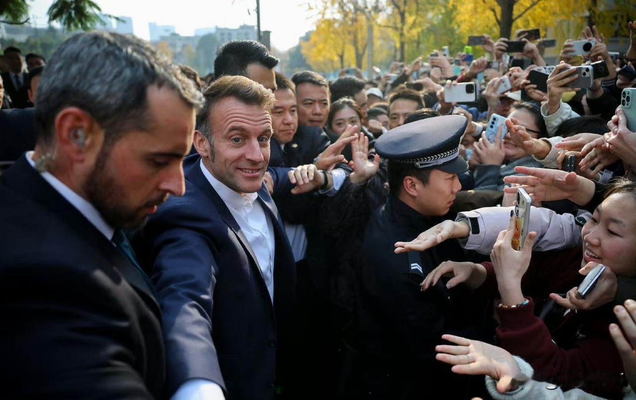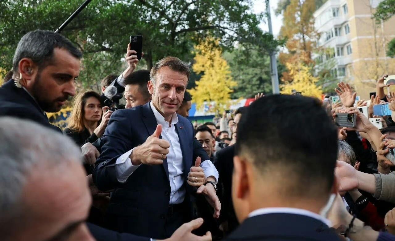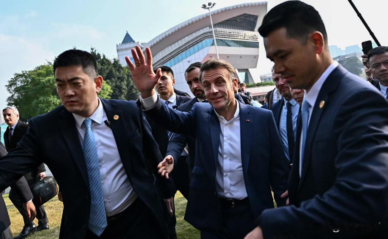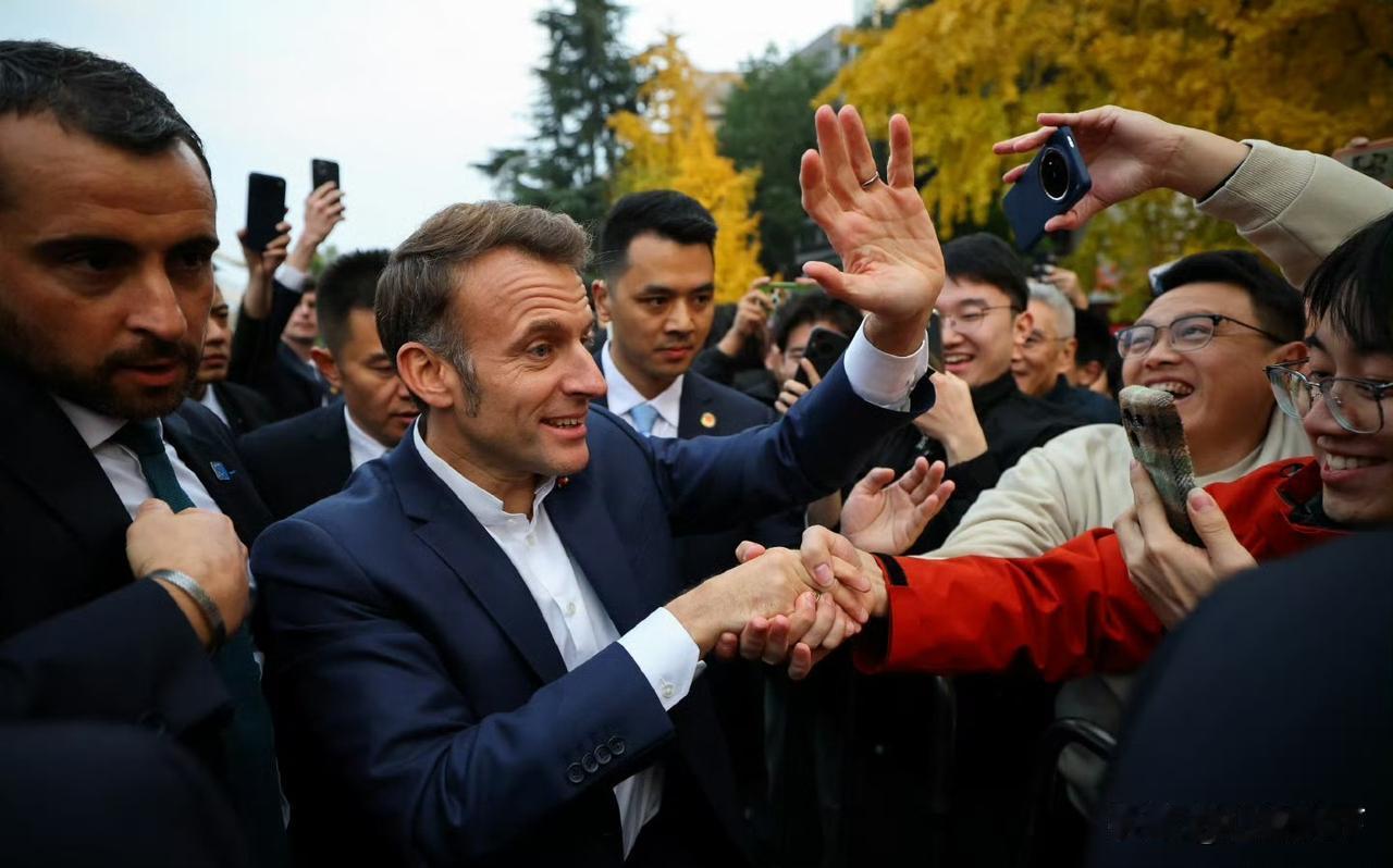 笑死,马克龙这次访华都要被川大学生哄成胚胎了,终于享受了一把顶流的感觉,要知道之前马克龙出门不是被扔鸡蛋就是被扇巴掌,这次川大给的情绪价值太到位了,嘴角比AK都难压[笑哭][笑哭] 马克龙