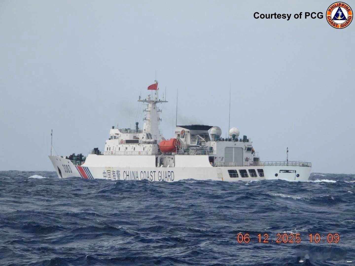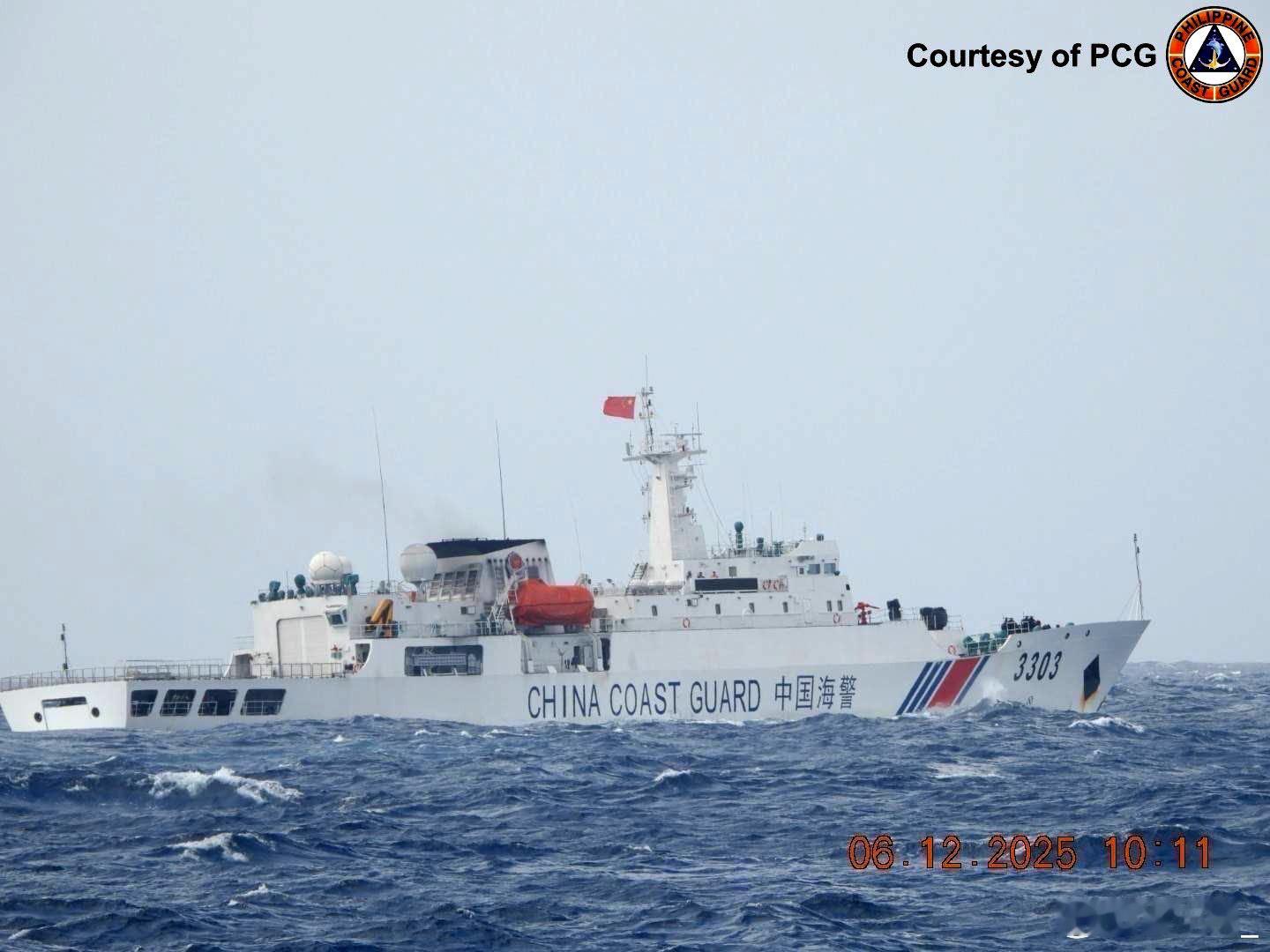 中国海警3303舰昨天在吕宋岛以西海域监控菲律宾海警9701舰。南海态势
