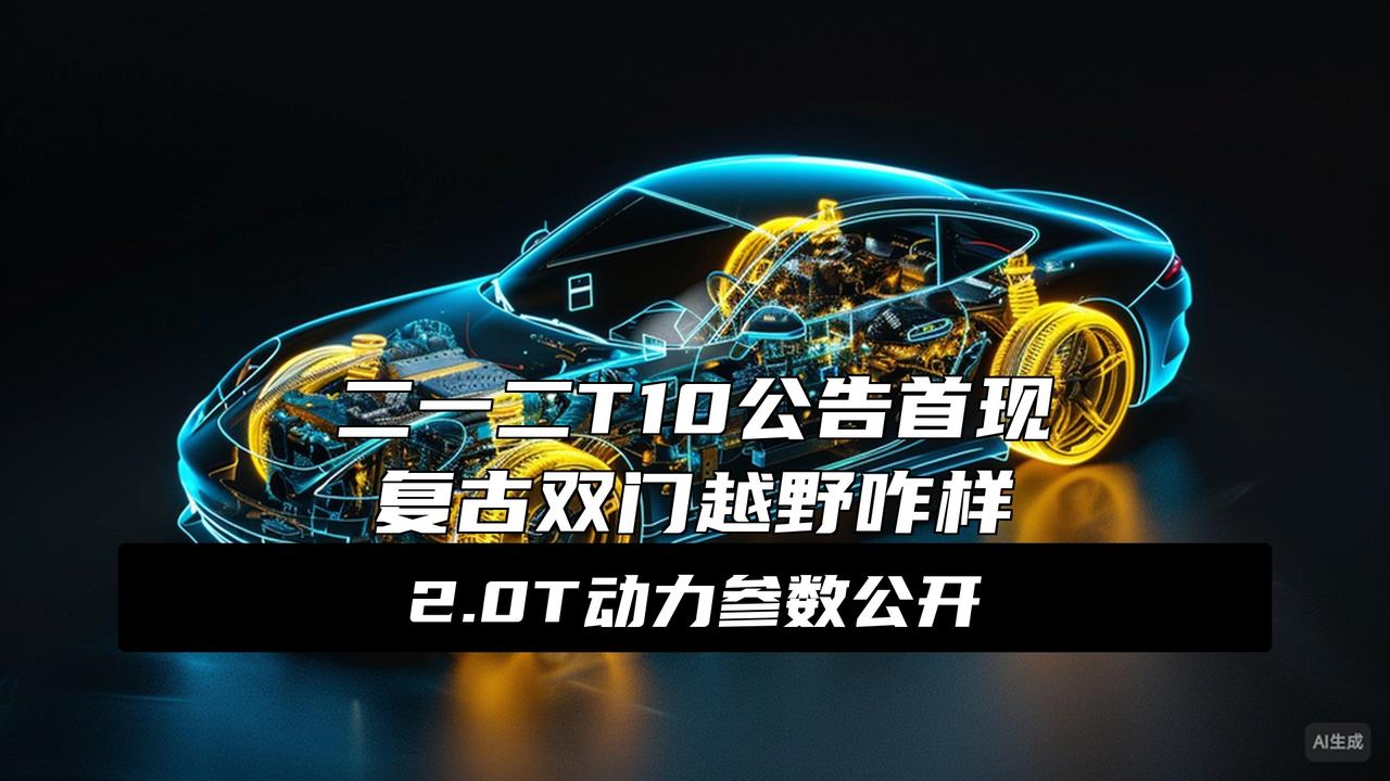 212越野车T10申报:主打硬朗复古风,双门+可拆卸车顶 大消息北京汽车制造厂又有新动作了?工信部今晚公布的第四百零二批公告里,二一二牌全新越野车T10首度现身。 这款新车依旧主打复古风,轮廓硬朗方正,配有圆形车灯和粗壮前格栅,还有大尺寸前保险杠。 它最大的特征是什么?采用双门四座设计,还配有可拆卸车顶。 这款新车尺寸如何?长宽高分别是4416毫米1955毫米1925毫米,轴距2570毫米。 动力方面搭载2.0T涡轮增压汽油发动机,最大功率可达175千瓦。 对比之前的212 T01它有哪些不同?T01搭载2.0T发动机最大功率185千瓦,还配8AT自动变速器和电控机械分时四驱。 T01有三款配置,价格从13.99万到17.29万不等。 今年广州车展期间T01还推出了高地版车型,售价20.58万。 这款主打硬朗复古风的T10会吸引多少越野爱好者?大家觉得它的定价会比T01高吗?欢迎评论区留下你的看法,关注转发获取更多新车资讯。