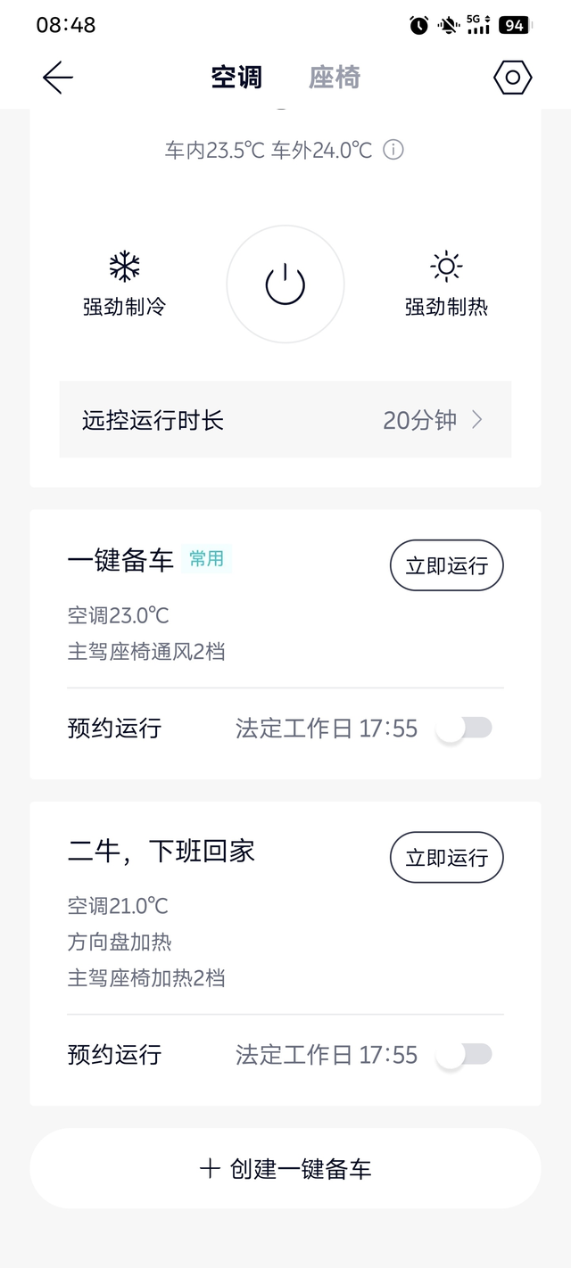 让我看看谁还没用快捷方式和一键备车呢 分享我自己在用的快捷方式 和到点儿自动打开空调的小功能 起步环视大家应该都用了吧,非常简单实用 挂d档,打开360环视,速度超过20公里自动关闭 上班通勤和打道回府就是在每天通勤往返的时间段内,自动导航家和公司的位置,并且自动播放我喜欢的歌单 这三个是在广场上直接找的并自己做了小修改 上面两个快捷方式就是到了单位比较早,在车里休息一下,挂p档,自动调整座椅位置和下班上车后,自动调整到驾驶位置的快捷方式 app上的一键备车也是去年冬天才用的 我公司停车场是地面,目前晒一天车内温度在下午6点时已经快到40度了 提前五分钟自动把空调打开,设置23度,自动座椅通风,上车就是清清凉凉。