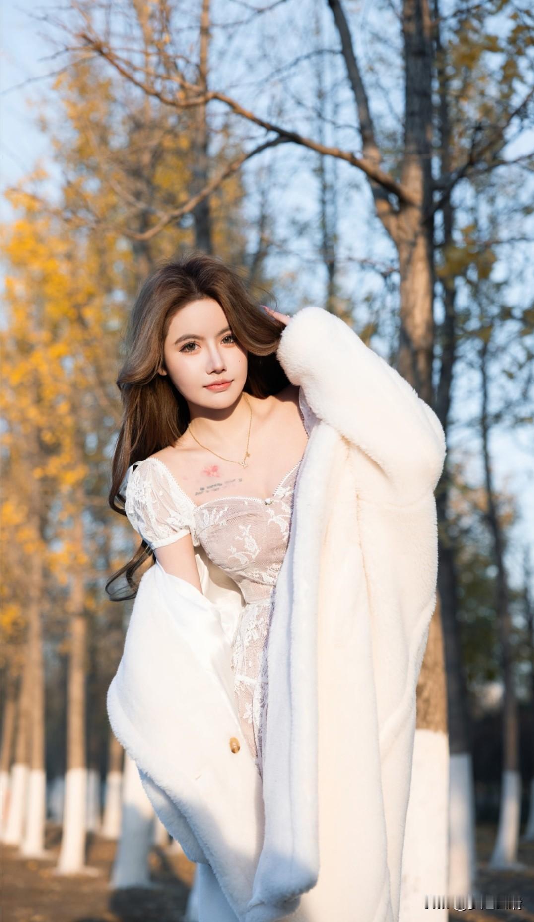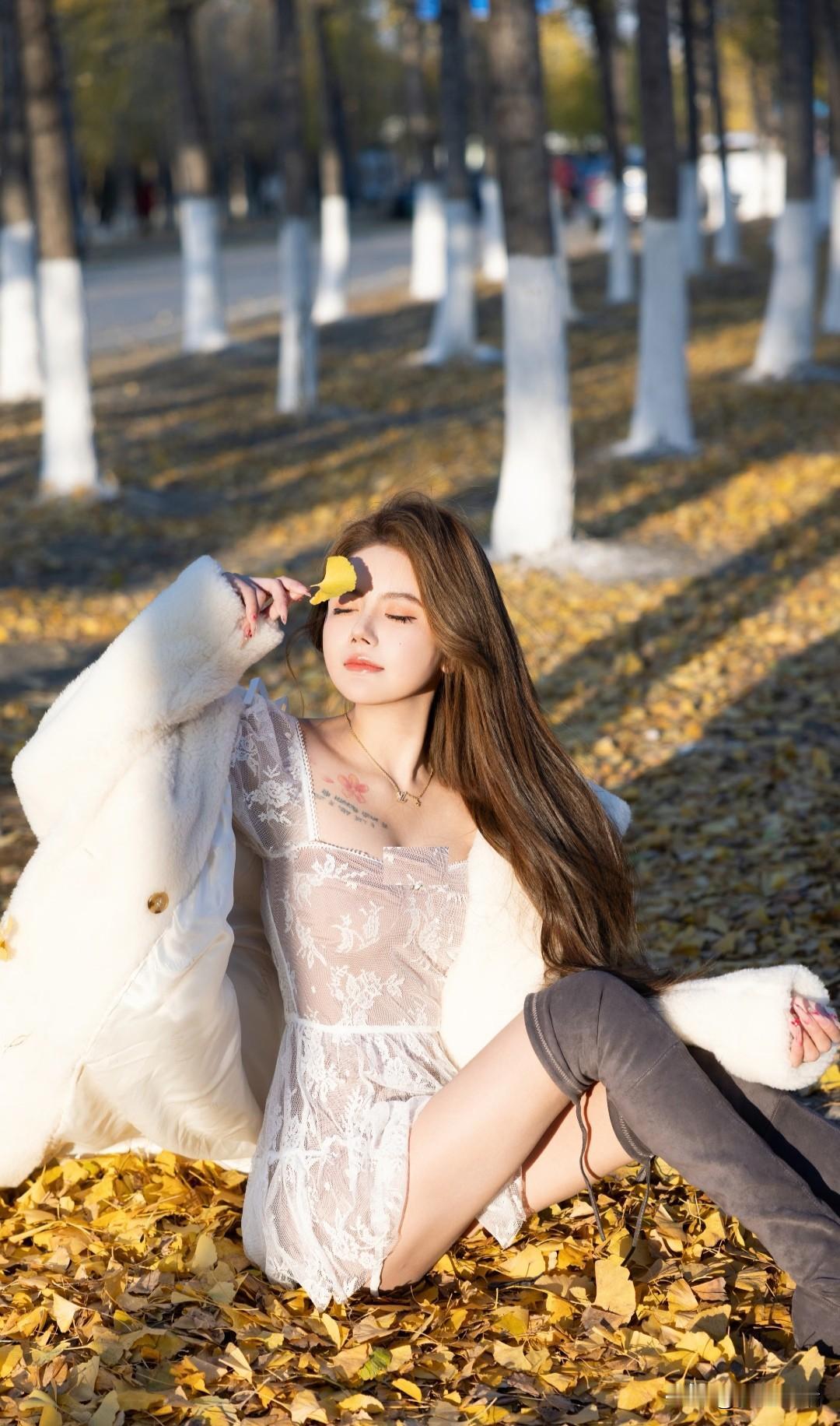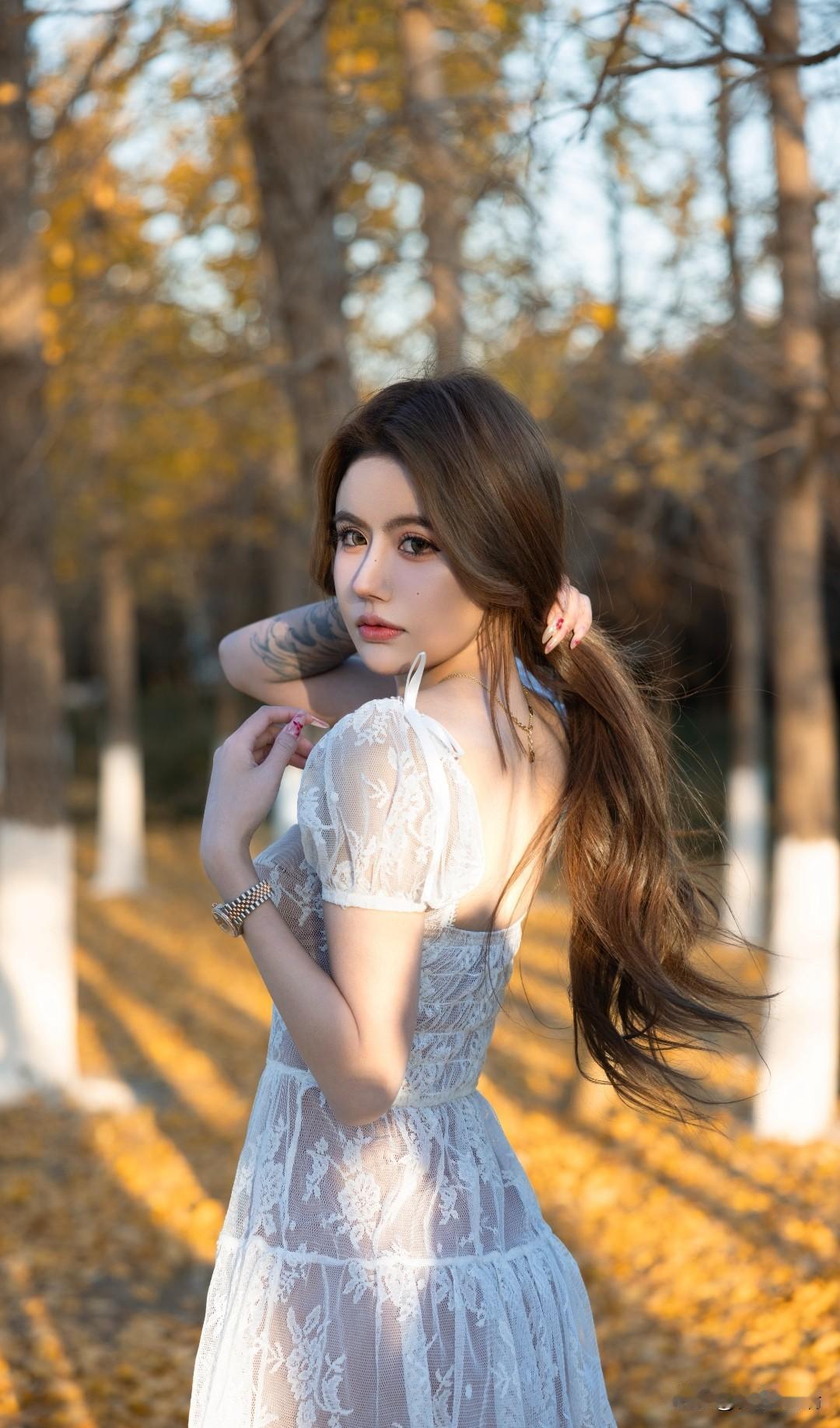 秋日森林中的梦幻少女,柔美的姿态与自然融为一体。