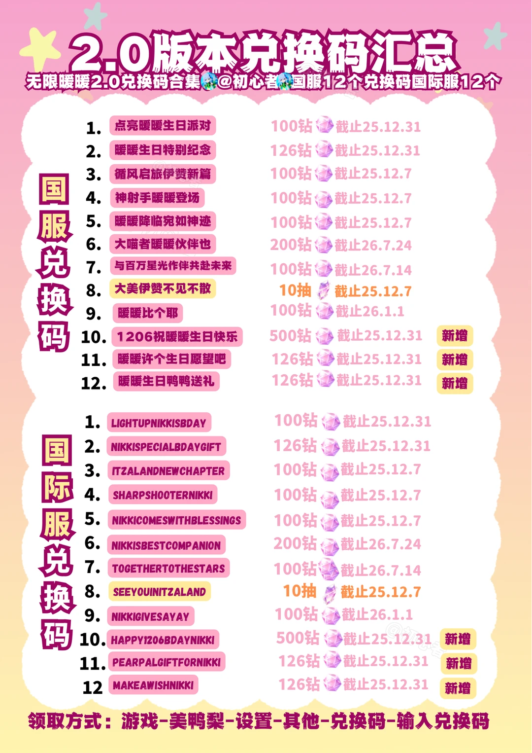 有新增兑换码!500钻+126+126[喝奶茶R][派对R]暖暖祝你生日快乐🎂🎁