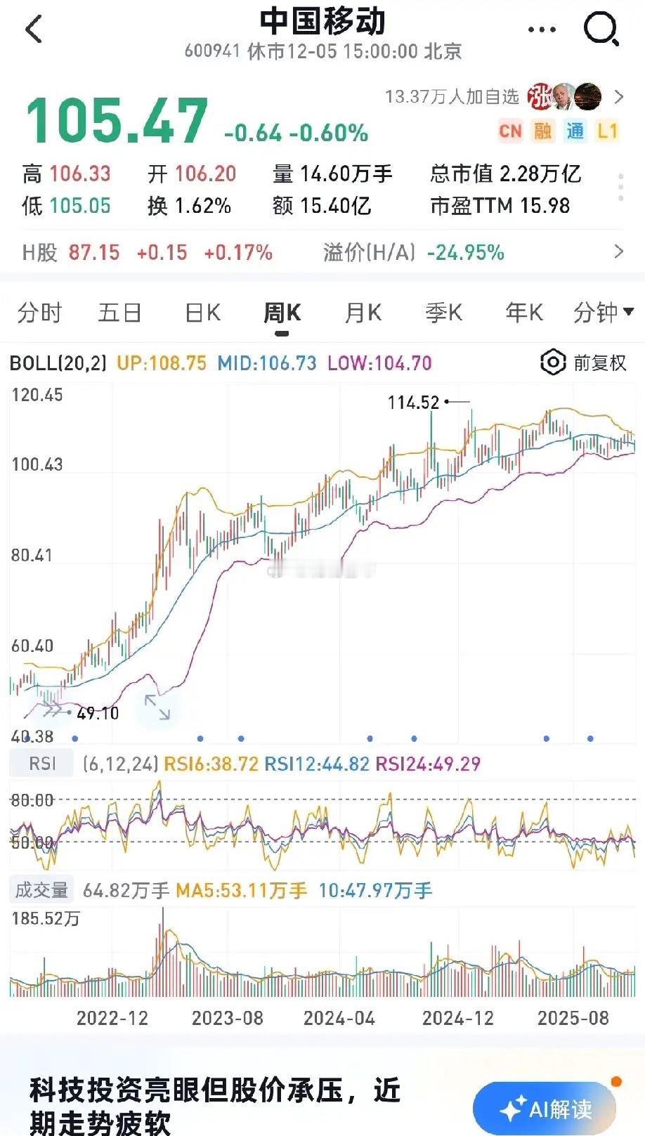 大家看看以下构建的红利组合如何?1.红利etf为主要仓位国企红利ETF(长期持有配合网格交易)中证红利ETF(长期持有不网格交易)红利低波50ETF(长期持有+网格交易)其他行业ETF——锂电池etf,医疗医药etf,酒etf,碳中和etf2.辐射其他个股高股息中国移动,中国电信,交通银行,平安银行,光大银行,招商银行、北京银行,中国石油,中国平安,内蒙华电,中国神华、兖矿能源、四川成渝,长江电力,中国核电、云南白药,唐山港,中国燃气......3.如果真的奔着吃息,电力、家电、煤炭、银行、保险都会受到周期或者技术变革的影响,均不如电信股稳定,中国移动,分红率4%+,垄断行业,整体业绩比较平稳,基本都不随经济周期波动,虽然空间有限,但却是永续债类似的最佳投资标的。