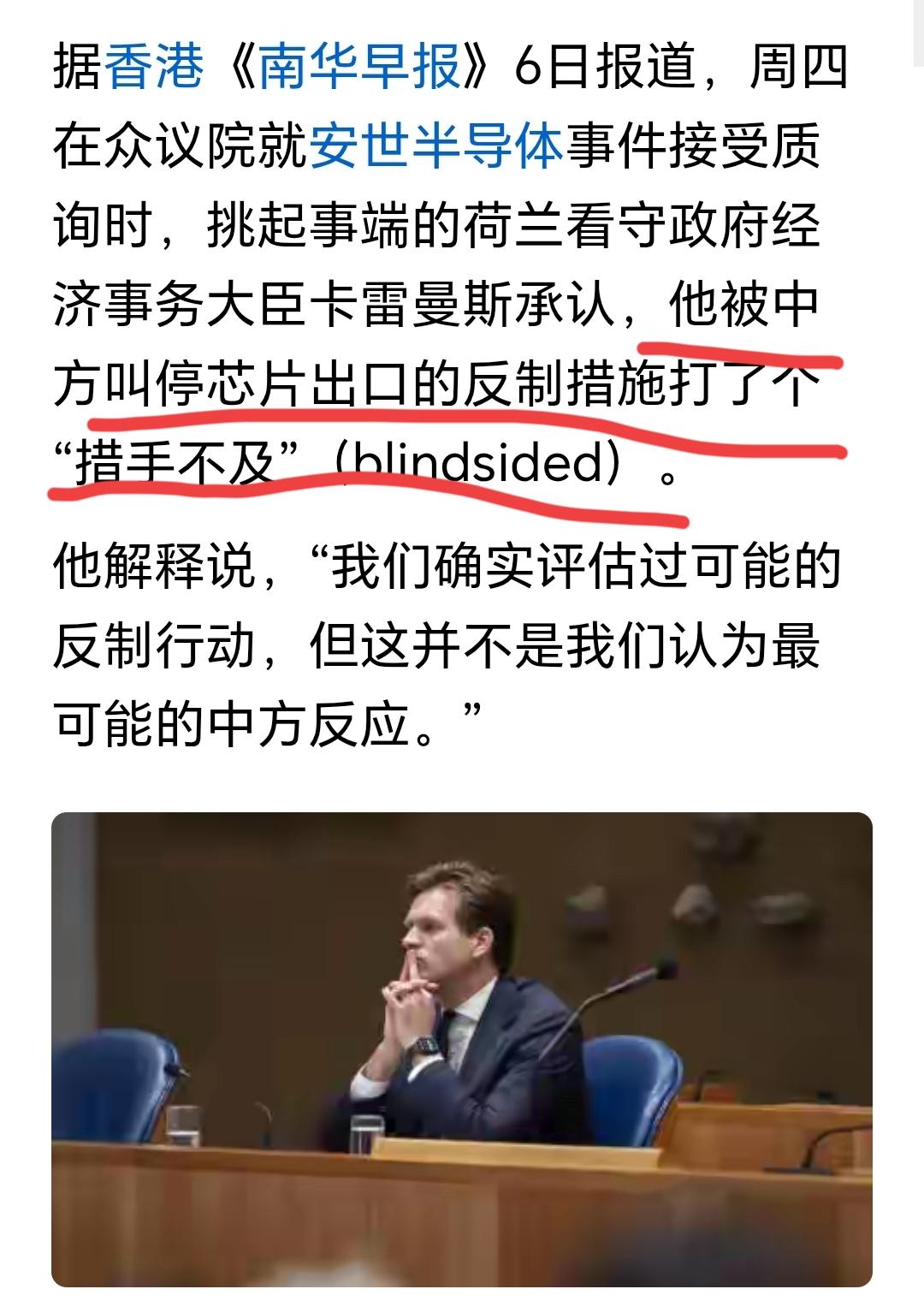 荷兰经济事务大臣承认被我们打了一个措手不及。成年人了,怎么做事还是这么不长脑子? 你以为安世半导体是块肥肉,结果一口咬下去崩了牙。 现在还死鸭子嘴硬,那就继续硬气呗。 反正流血的不是我们,疼的也不是我们。 西方的政客就是这样傲慢而又无知。 看看法、德、英这些国家在干嘛,别人都在匆匆忙忙连滚带爬跑中国了,只有你们还傻乎乎地在这里打嘴炮,这真是那啥都赶不上一口热乎的。 点右上角关注我,我们一起去看这个魔幻的世界