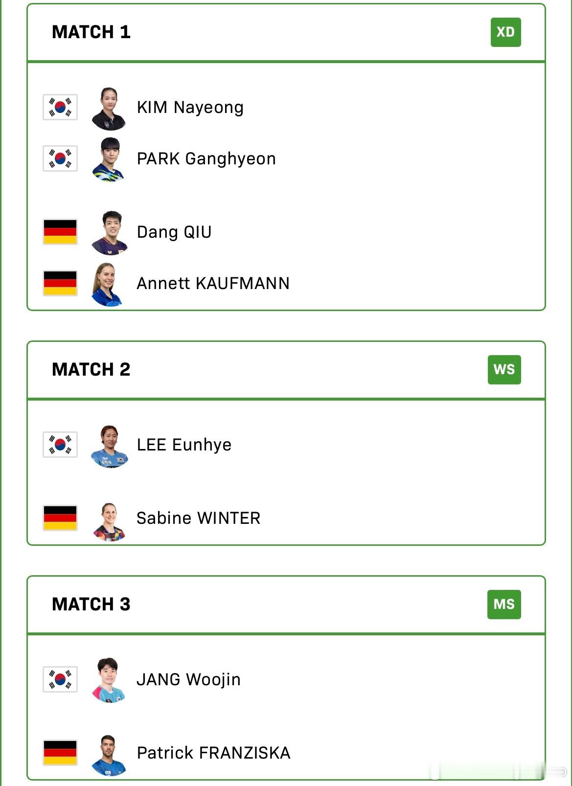 2025成都混合团体世界杯 铜牌赛🇰🇷韩国🆚德国🇩🇪金娜英/朴康贤🆚考夫蔓/邱党李恩惠🆚沙宾·温特张禹珍🆚弗朗西斯卡