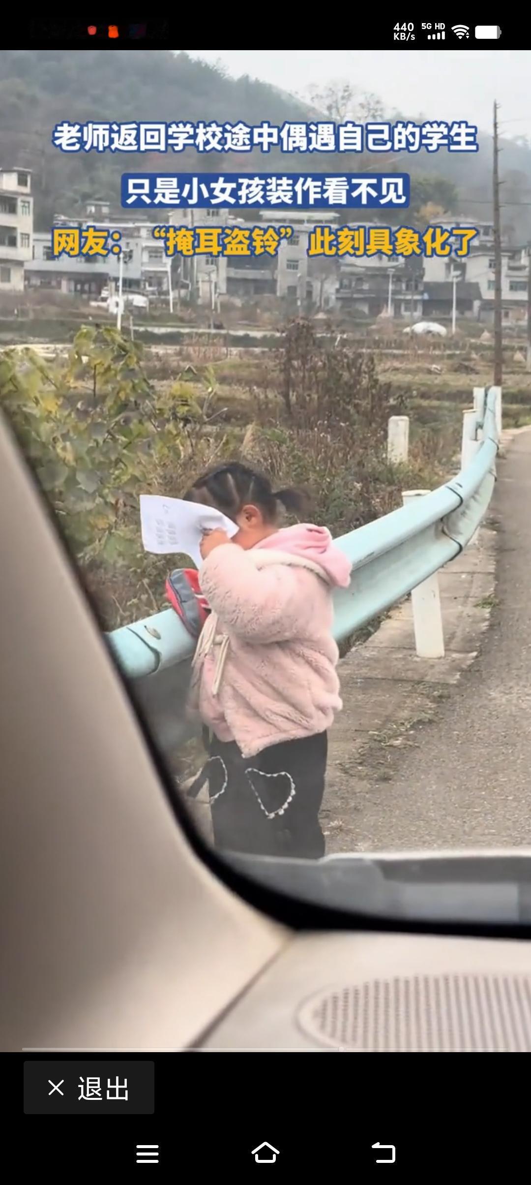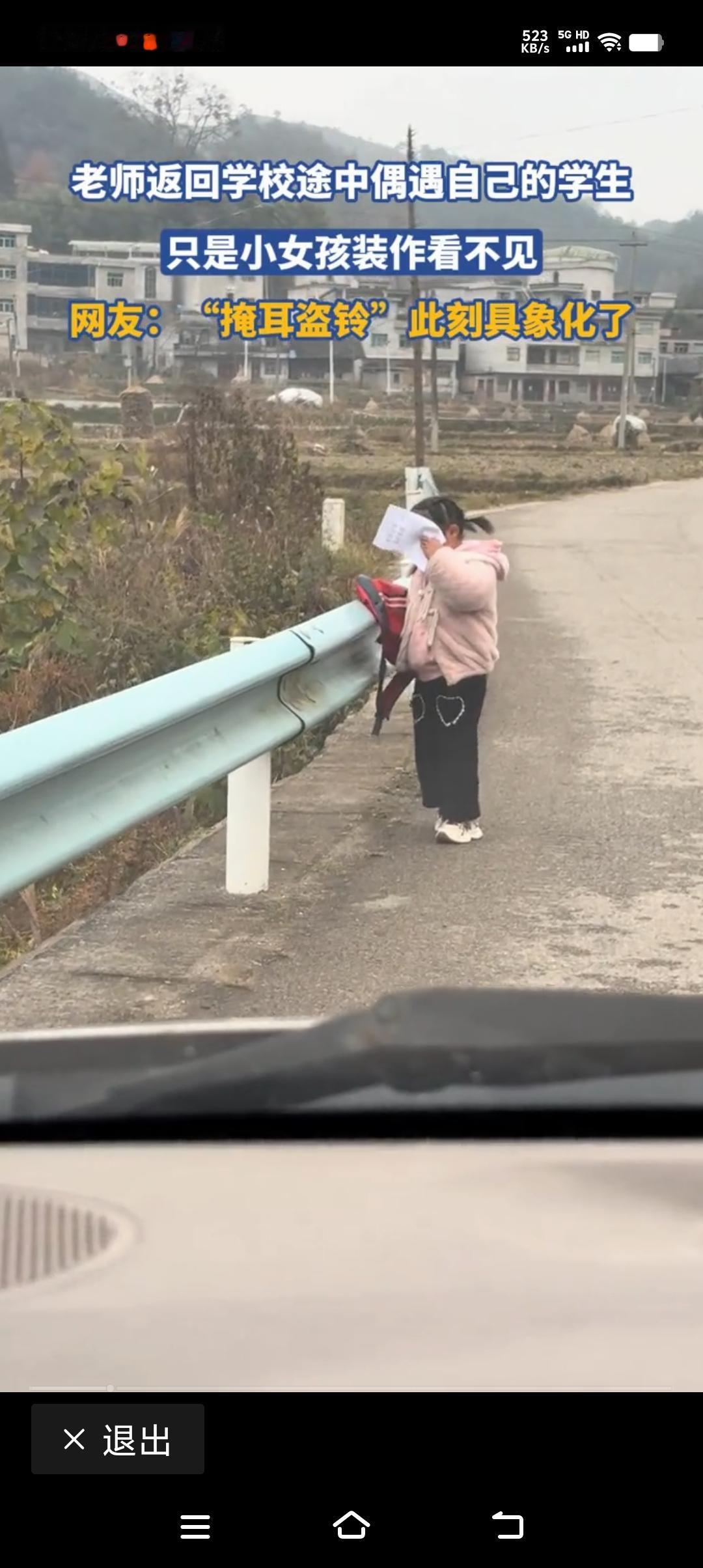 一个短视频好搞笑! 一个穿着粉色卫衣, 梳着马尾辫的胖乎乎的女孩用一张纸挡着半边脸把书包放在桥栏杆上一边列着书包,一边挡着脸,一边往前行走,仿佛是在躲避着什么人人, 原来这是女孩遇到了他班的老师,怕老师认出他来害羞捂着脸逃避! 就这一视频网友们炸开了锅,有的说这是教育的失败,难道这不是学生怕老师吗?是恐惧的心理, 也有的说这孩子该有多怕老师啊,见到老师都吓成这样, 其实大家有些多虑了的, 有些孩子在生活中就是特别害羞。 也许在班级里女孩可以跟老师大大方方的说话,但是一旦在另一个环境中陌生的场景中,他觉得遇到老师有点手足无措, 只有躲避就是特别害羞。 女孩这一行动,正是证明了这个女孩平时很尊重老师,敬畏老师,怕在老师面前说错了,话做错了事。 相反,如果是调皮捣蛋的孩子,看到老师就会鞋底抹油呲溜一下逃跑,他才不会像这个女孩这样小心翼翼的躲避! 有人说这是教育的失败,其实有点想多了, 这不免让我们联想到了,在课堂上有些同学在违犯纪律的时候后桌和同桌说话,常常把打开的书挡在脸上就是掩耳盗铃,这是小孩子的天性单纯,他以为用书挡一下老师就看不到他嘴在动说话了,其实这样更会引起老师的注意。 女孩用一张纸挡住他的脸,他以为老师看不到他的脸就认不出他是谁了,就免得尴尬,因为 她在这样的空间里遇到老师就不知道说什么了! 看到女孩这个举动,真是挺搞笑的, 这样的举动只有出自最幼稚,最纯洁的孩子身上!
