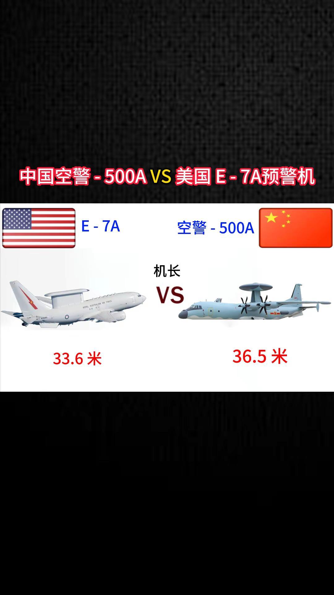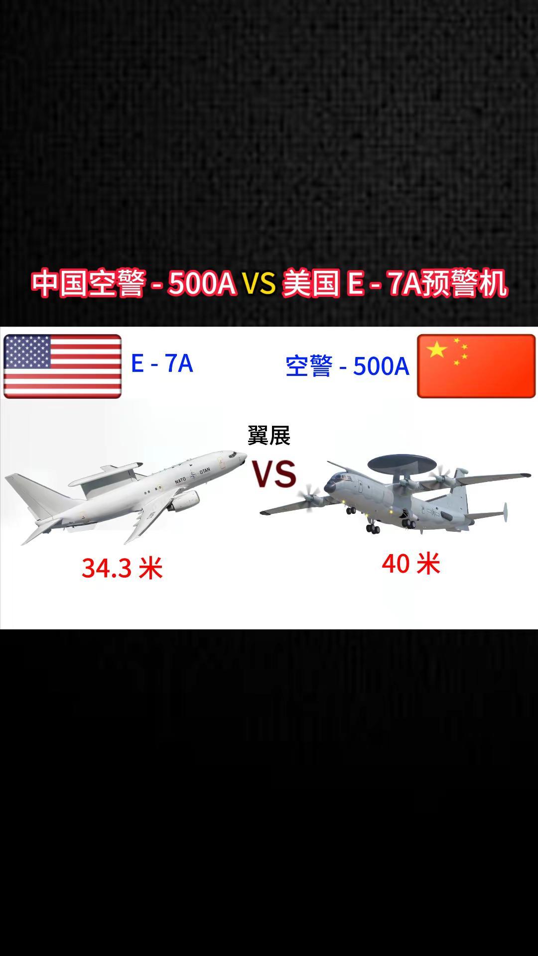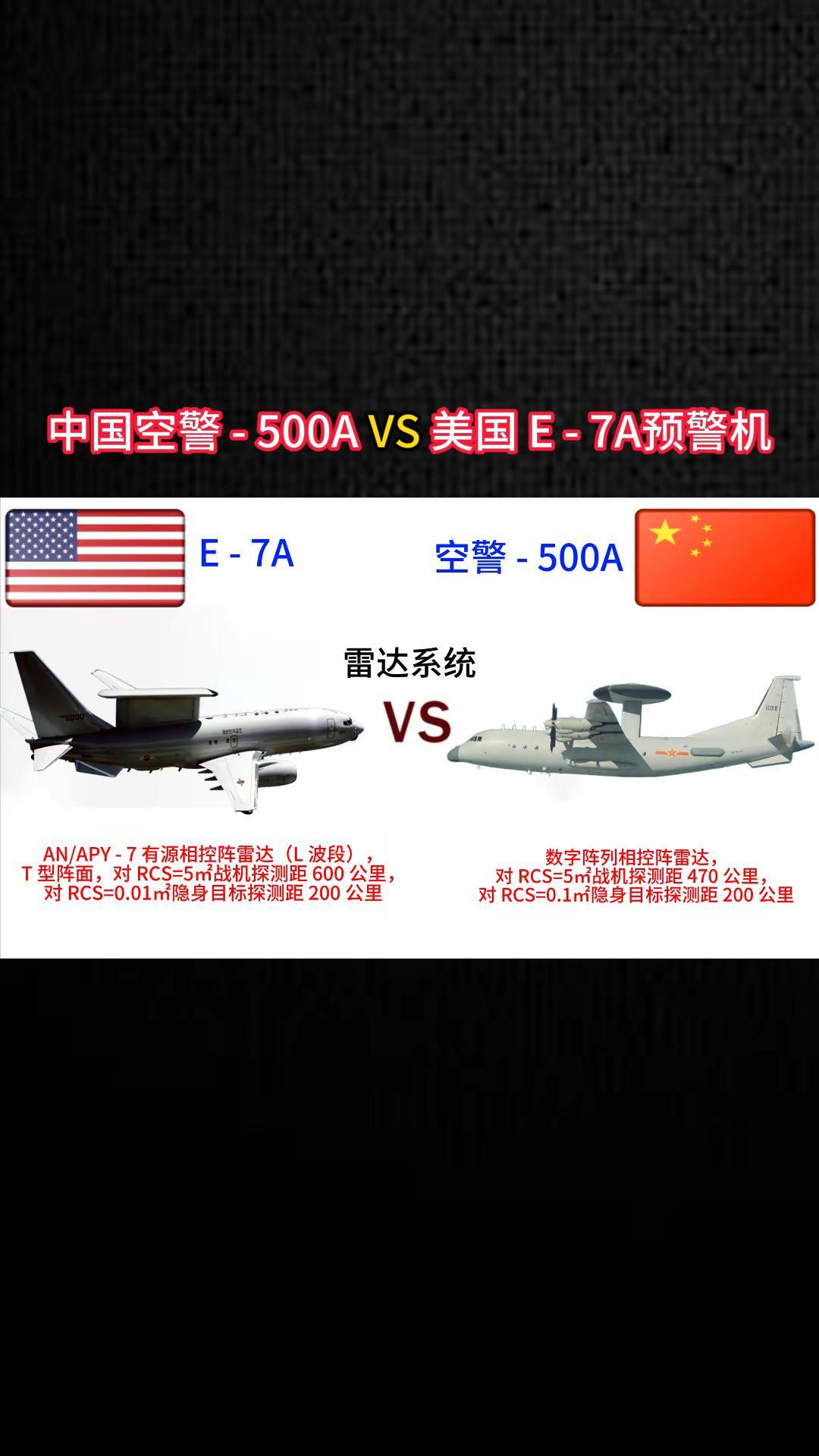 中国空警500A VS美国E-7A预警机。军事科普 军事科技 军事爱好者 军事迷