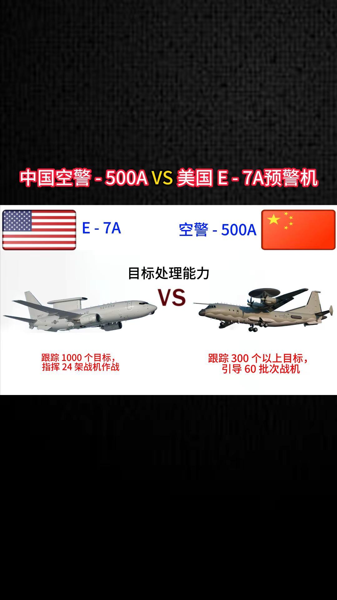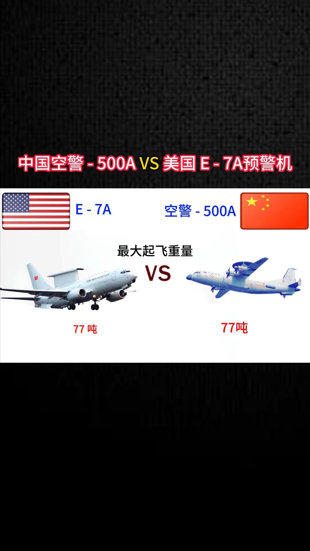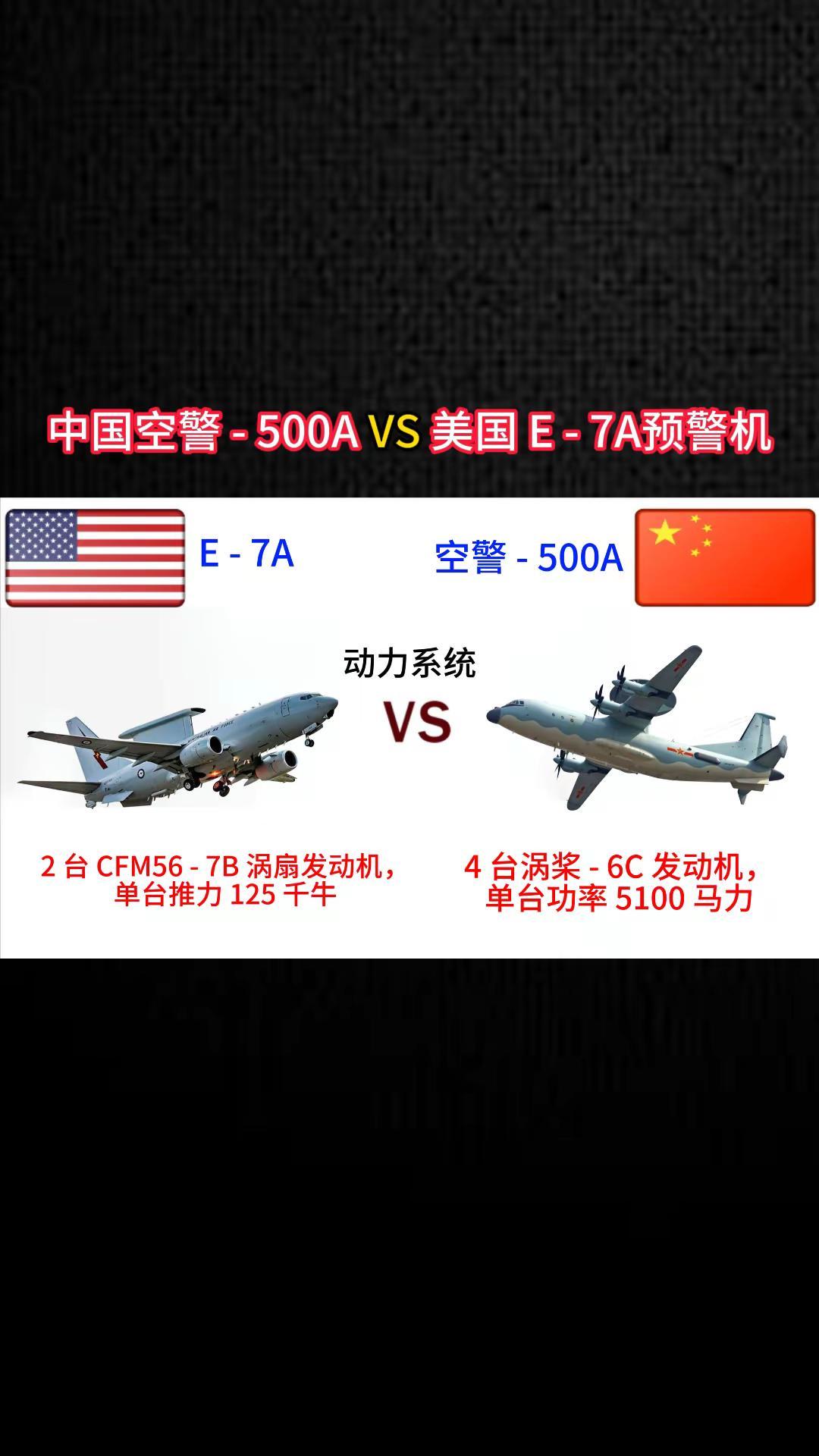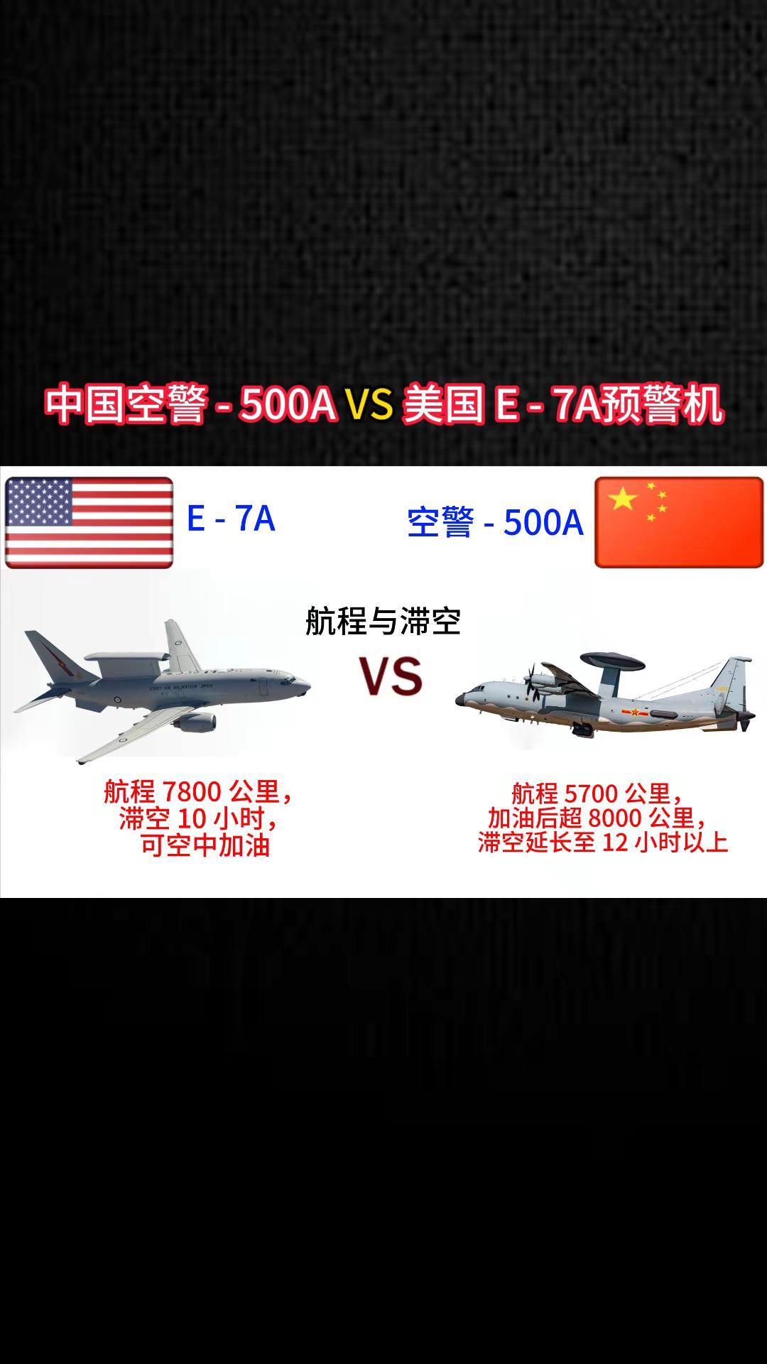 中国空警500A VS美国E-7A预警机。军事科普 军事科技 军事爱好者 军事迷