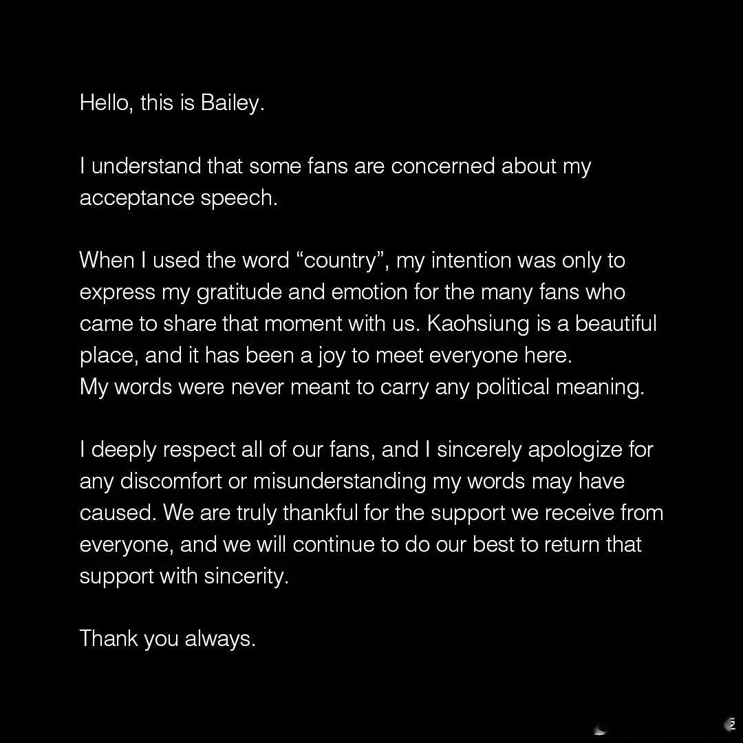 ADP成员Bailey道歉 ADP成员Bailey发布回应并道歉