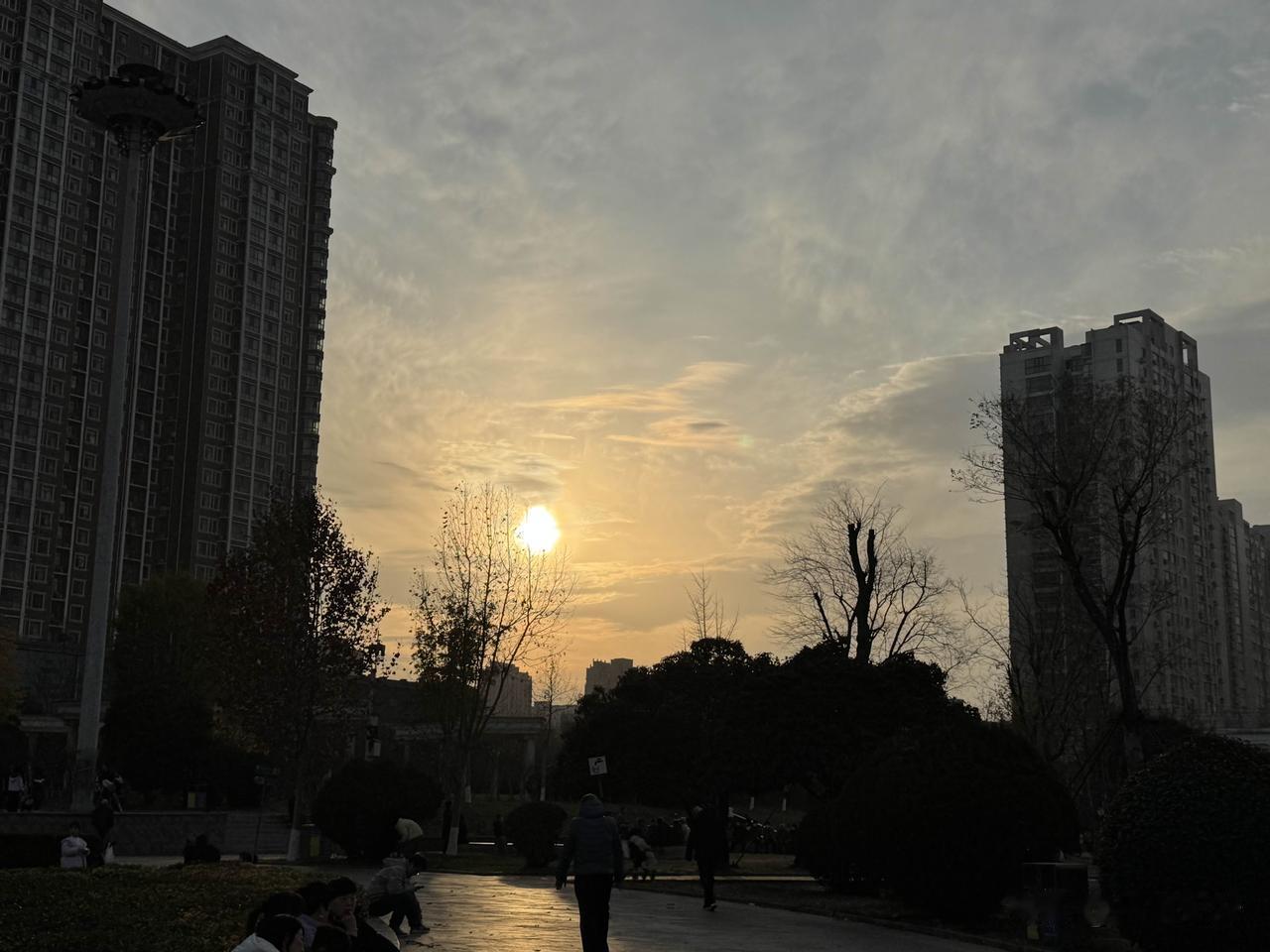 傍晚的风裹着初冬的凉,掠过小区步道的砖缝,把天边那片橘黄揉得更软了些。我坐在长椅上,看落日把两栋高楼的轮廓浸成暖金,光秃的树枝在光晕里描着细瘦的线,像谁随手勾在宣纸上的淡墨。 旁边的阿姨在给孩子剥橘子,酸甜的气息混着风里的枯草味飘过来。穿蓝外套的人慢慢走着,影子被夕阳拉得很长,在湿漉漉的地面上晃出碎金的光。没有云在烧,只有一层薄纱似的霞,把天染成刚温好的蜜色,连空气里的喧嚣都被滤成了轻响。 我摸出手机想拍,又觉得镜头装不下这漫出来的暖——楼群的冷硬被镀上绒绒的边,路过的风都带着光的温度,连长椅上的凉意都变得温柔。这样的时刻不用说话,光是看着落日一点点沉进树影里,心里就满得像被谁轻轻拍了拍后背,软下来的褶皱里,全是安稳的欢喜。