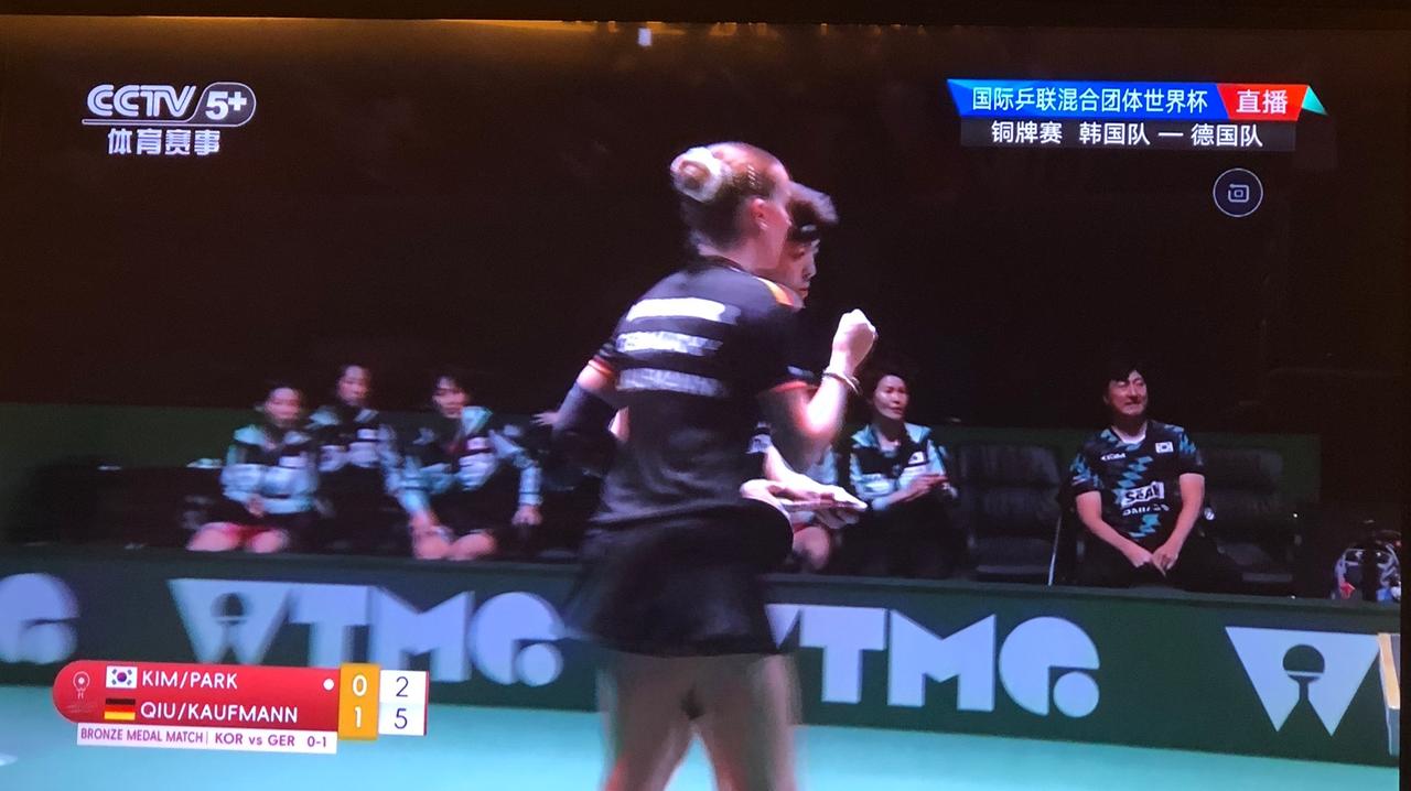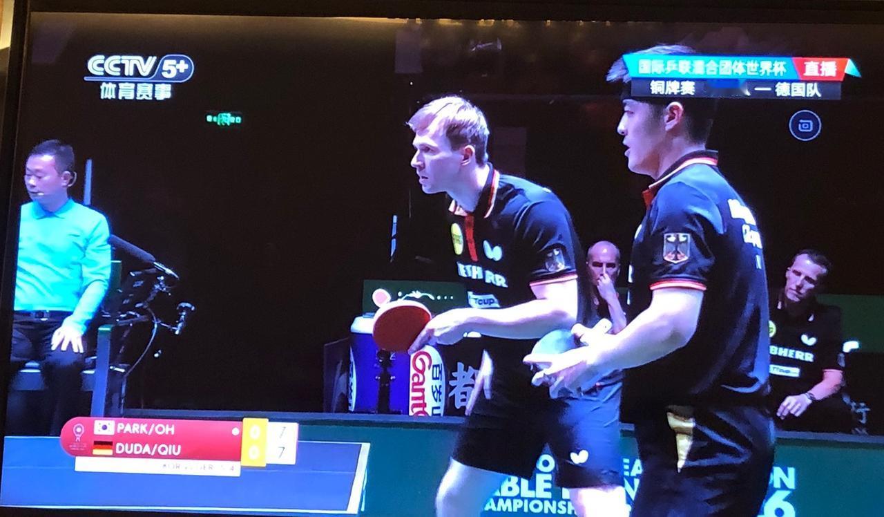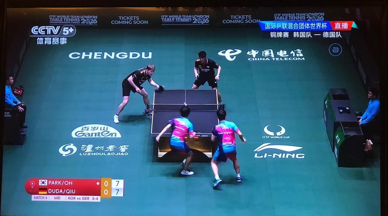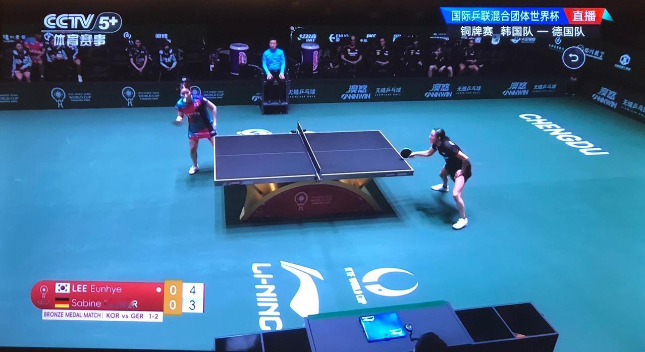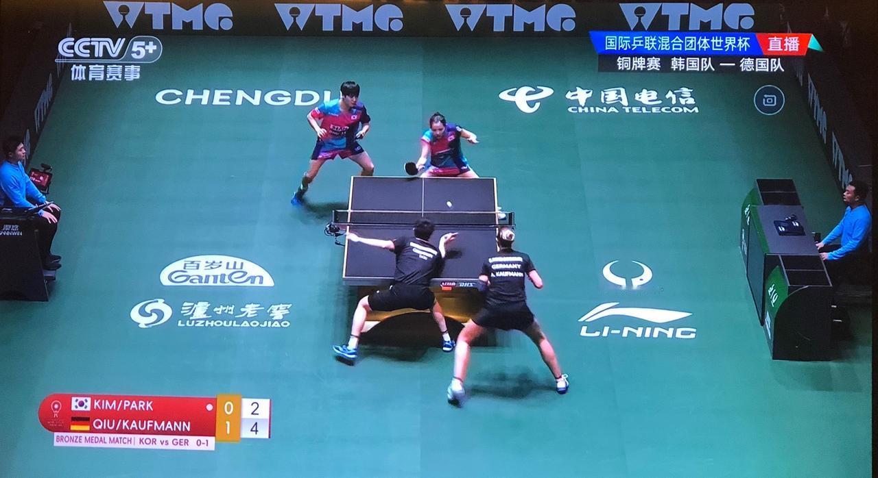 希望德国队拿到季军!正在看在成都举行的国际乒联混合团体世界杯比赛,德国队和韩国队正在进行争夺铜牌的比赛,双方打得非常激烈,现在是韩国队是6:4领先。非常希望欧洲能有一队拿到奖牌,否则就是中日韩前三名了。所以,一直在为德国队加油,还有邱党打的是直拍,他的直拍横打很有点王皓的风采。咱们的传统直拍打法,在咱们国家已经是完全没有生存环境了,但是在欧洲却异地开花了,比如邱党、勒不伦,他们打得风生水起,而且还取得不错的成绩。 还有德国的女选手温特,反手改用防弧,她的世界排名进步也非常大。 像长胶、正胶,防弧也曾经是咱们的武器,但如今都是墙内开花墙外香了。 感觉咱们国家队的选用的胶皮太单调了。 期待德国队这次能拿季军!