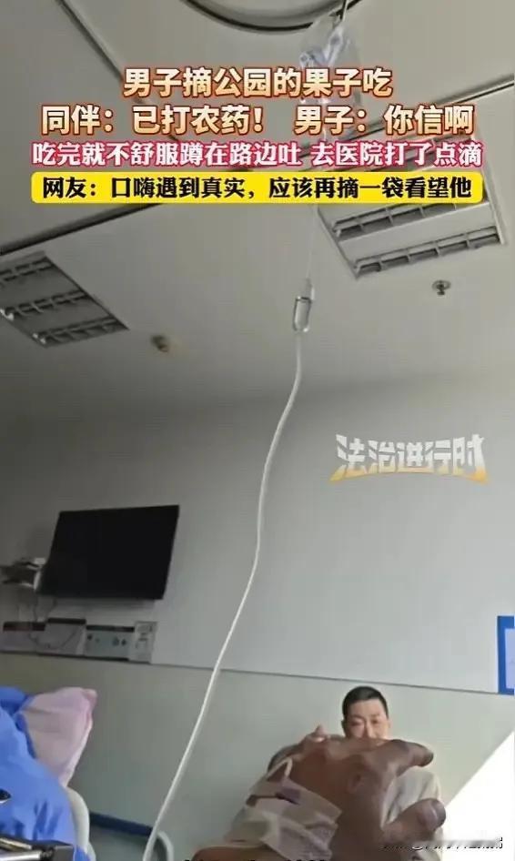 “这下后悔了吧!”近日,四川,一男子逛公园时,看见树上有果子,于是就想上前摘下来吃掉,同伴立马阻止,并指着警示牌说这个打了农药,可男子根本不信,依然将果子吃了下去,吃完后立马感觉身体不舒服,最后送往医院。网友:这下肯定信了。 公园里那棵挂满黄澄澄果子的树,远远看着就馋人,男子当时眼睛都亮了,几步就凑过去,伸手就往枝头够。同伴在旁边拉他胳膊,指着树身上挂着的粉色小牌子喊,说上面写着“已打农药,勿采摘食用”,可他摆摆手,把果子在衣服上蹭了蹭就往嘴里塞,还笑同伴“太胆小,这牌子就是吓唬人的”。 果子刚咽下去没几分钟,他就觉得胃里像被什么东西搅着,一阵一阵犯恶心,没走几步就蹲在路边吐得直不起腰,脸色白得像纸。同伴慌了神,赶紧扶着他打车往医院跑,到了医院一检查,医生说就是农药残留刺激了肠胃,得打点滴缓解。 这事儿被拍下来传到网上,好多人都忍不住笑,但笑着笑着也觉得有点后怕。生活里总有人这样,觉得“哪有那么巧”“我肯定没事”,公园的花随便摘,路边的野果随便吃,甚至看到警示标志也当成耳旁风。他们总觉得那些提醒是小题大做,直到真的栽了跟头,才知道“不听劝”要付出代价。 我想起小时候跟着大人去郊外,看到田埂上长得像草莓的野果,伸手就要摘,奶奶一把拉住我,说那是“蛇莓”,吃了会闹肚子。当时我还不服气,现在想想,要是真吃了,说不定也要像这男子一样去医院遭罪。公共区域的警示从来不是玩笑,它是给所有人的保护,可总有人把“侥幸”当成“本事”。 希望这男子打完点滴能真的长记性,也希望更多人能明白,不是所有“试一试”都能全身而退,那些摆在明面上的提醒,是比“运气”靠谱得多的护身符。 各位读者你们怎么看?欢迎在评论区讨论。