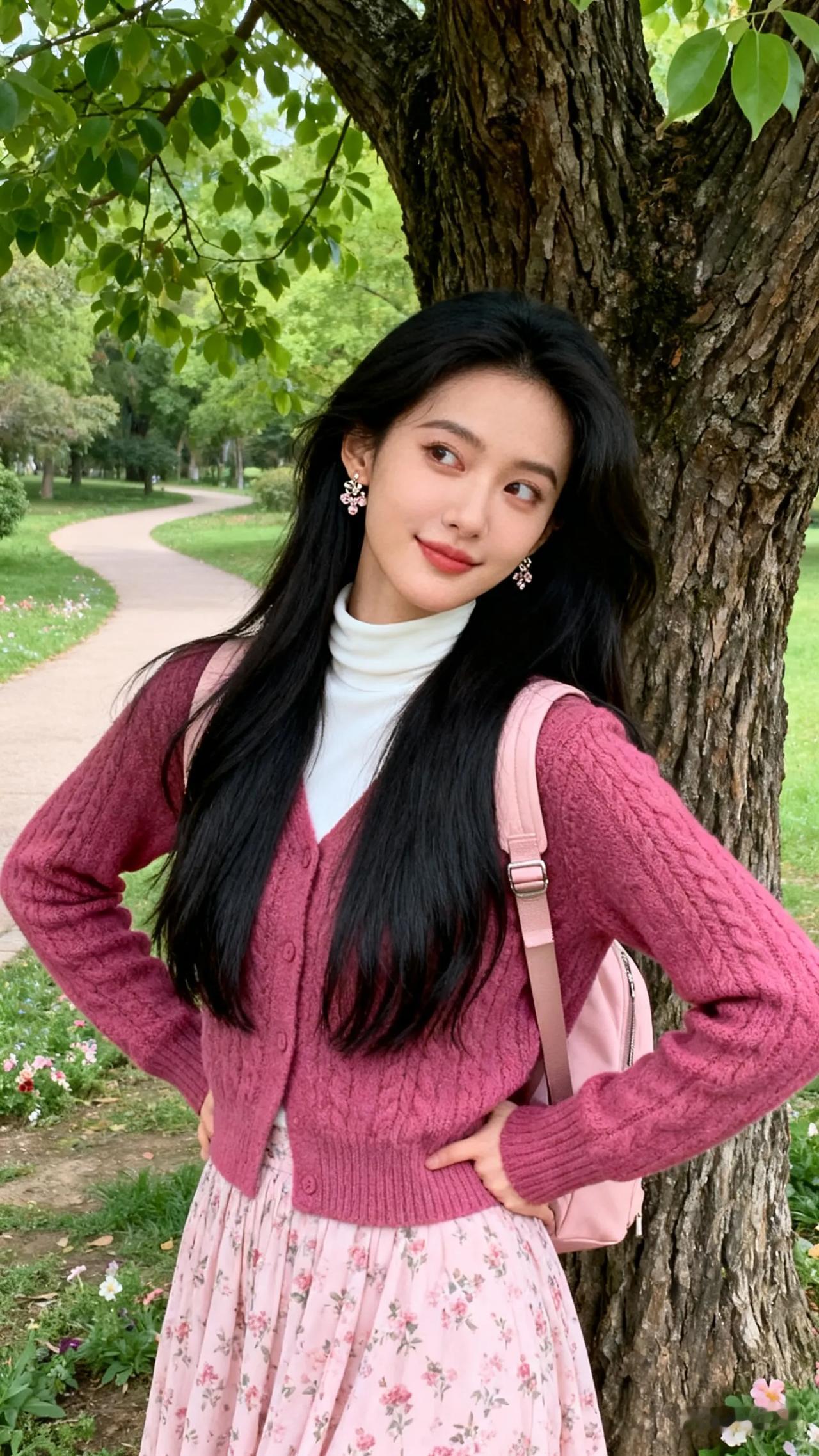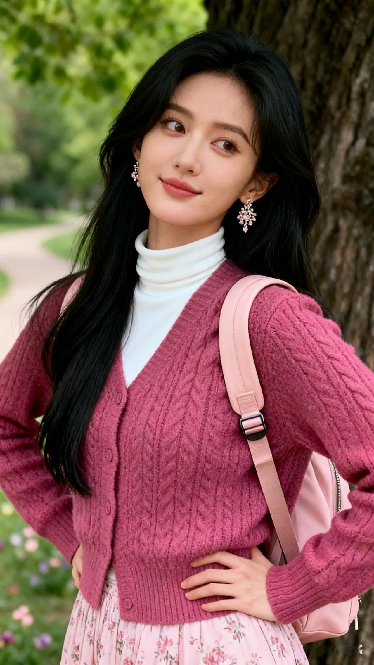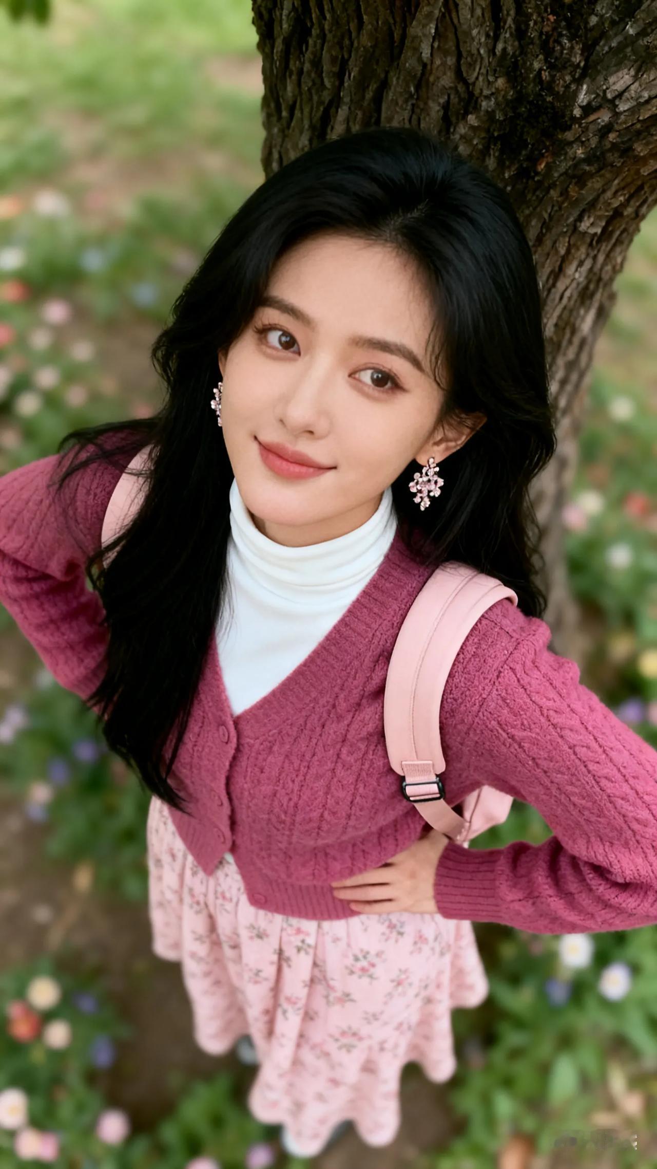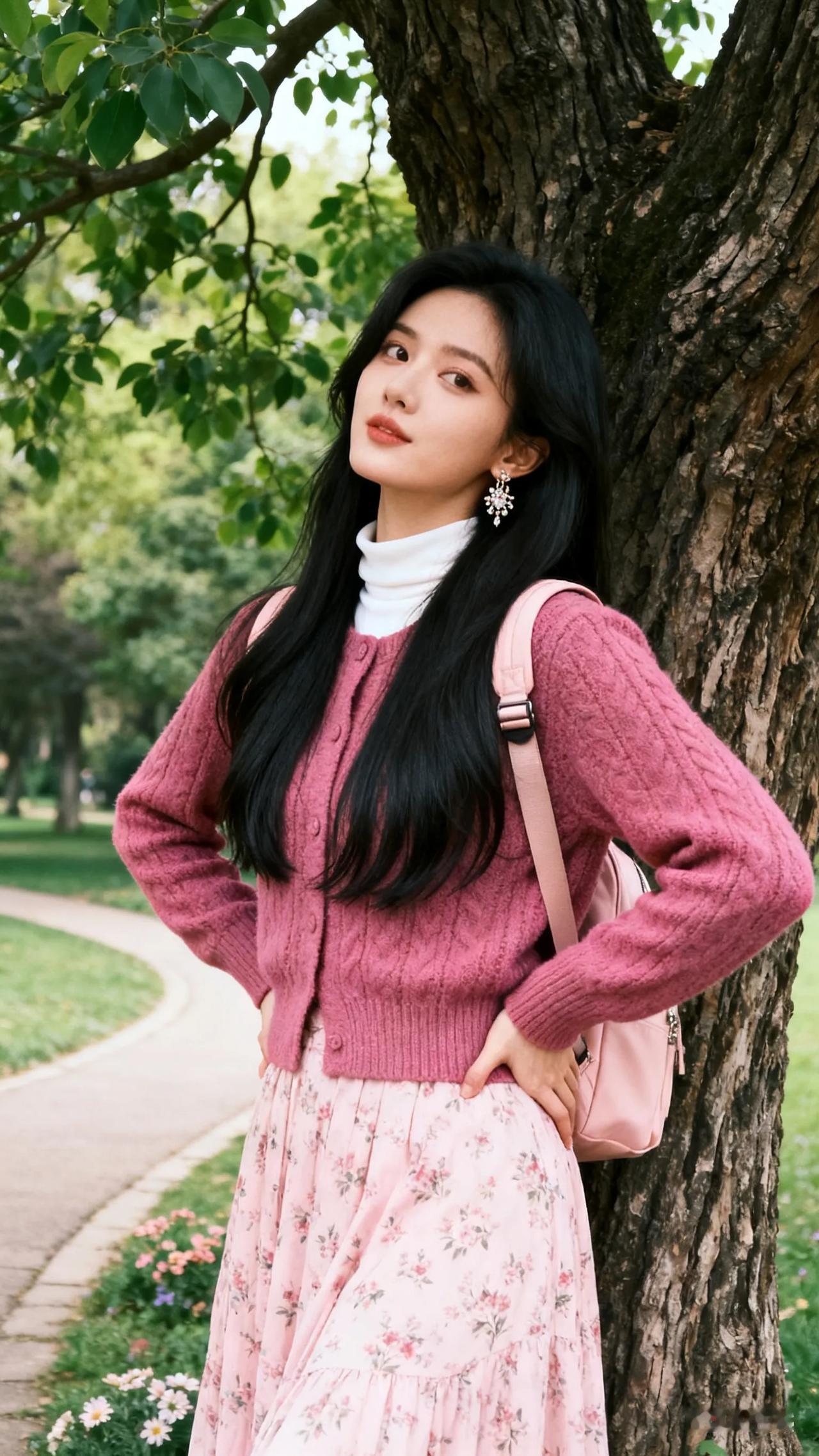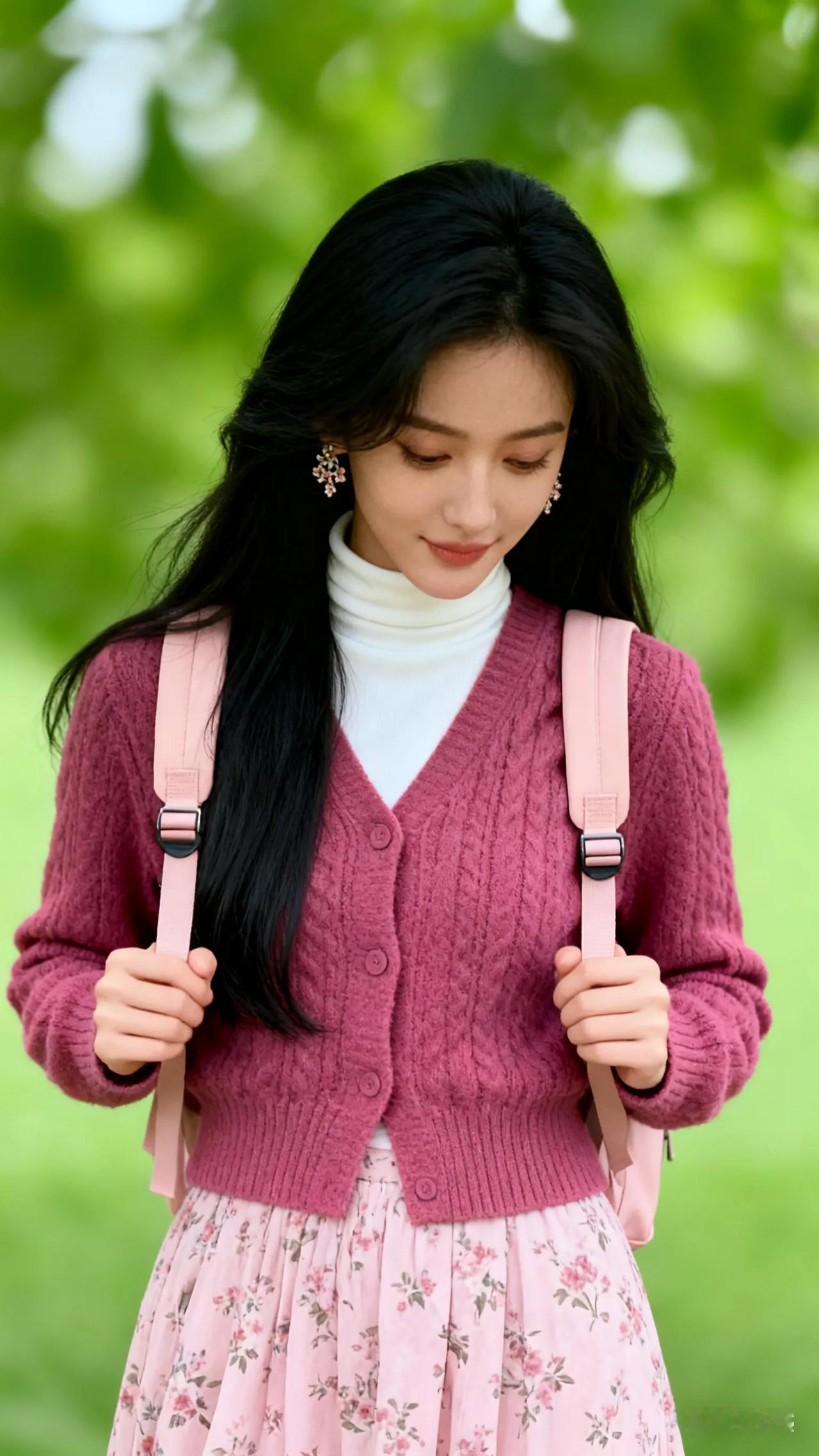 甜美校园风,粉色毛衣搭配白色高领衫,少女心满满!💕📚