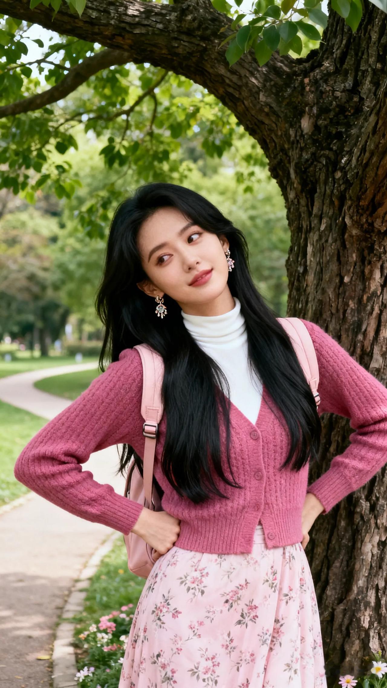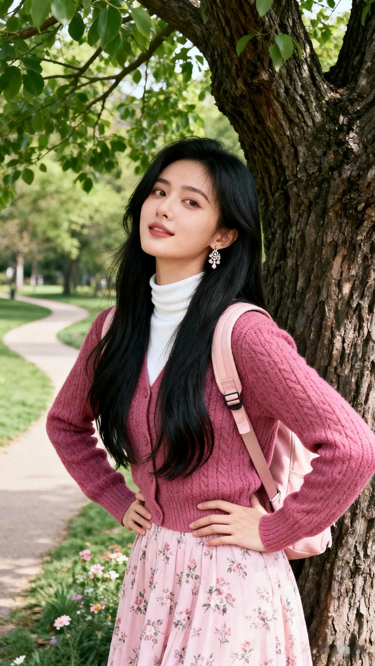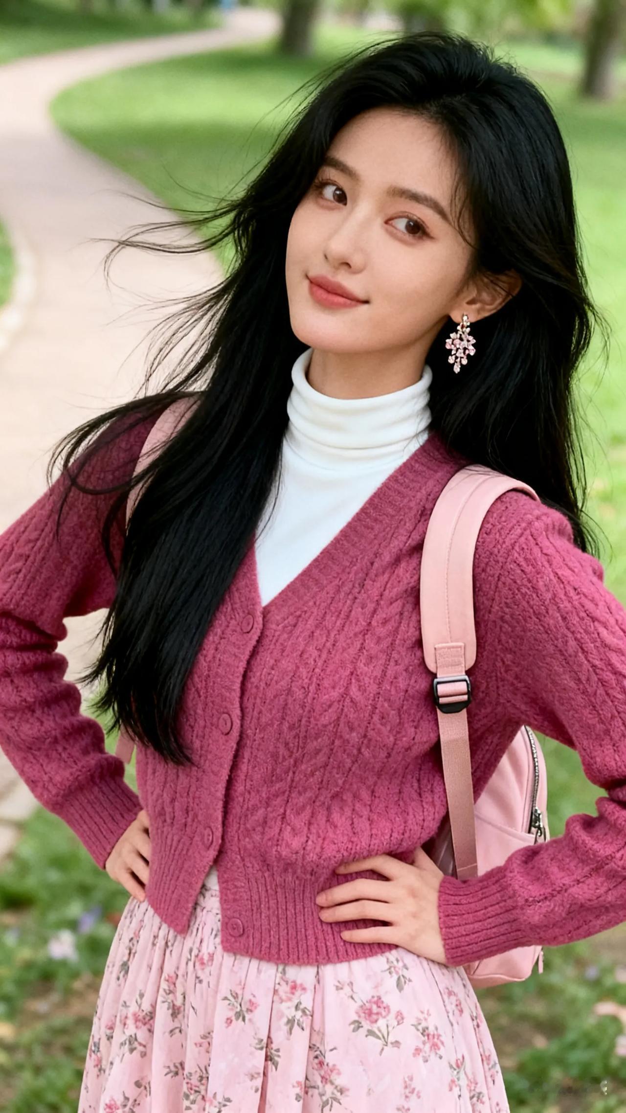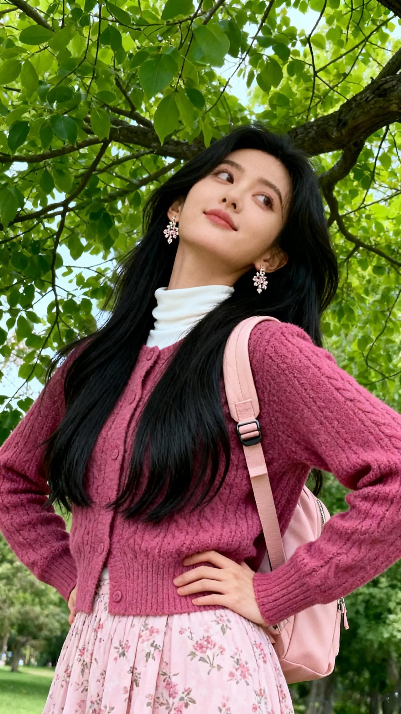 甜美校园风,粉色毛衣搭配白色高领衫,少女心满满!💕📚