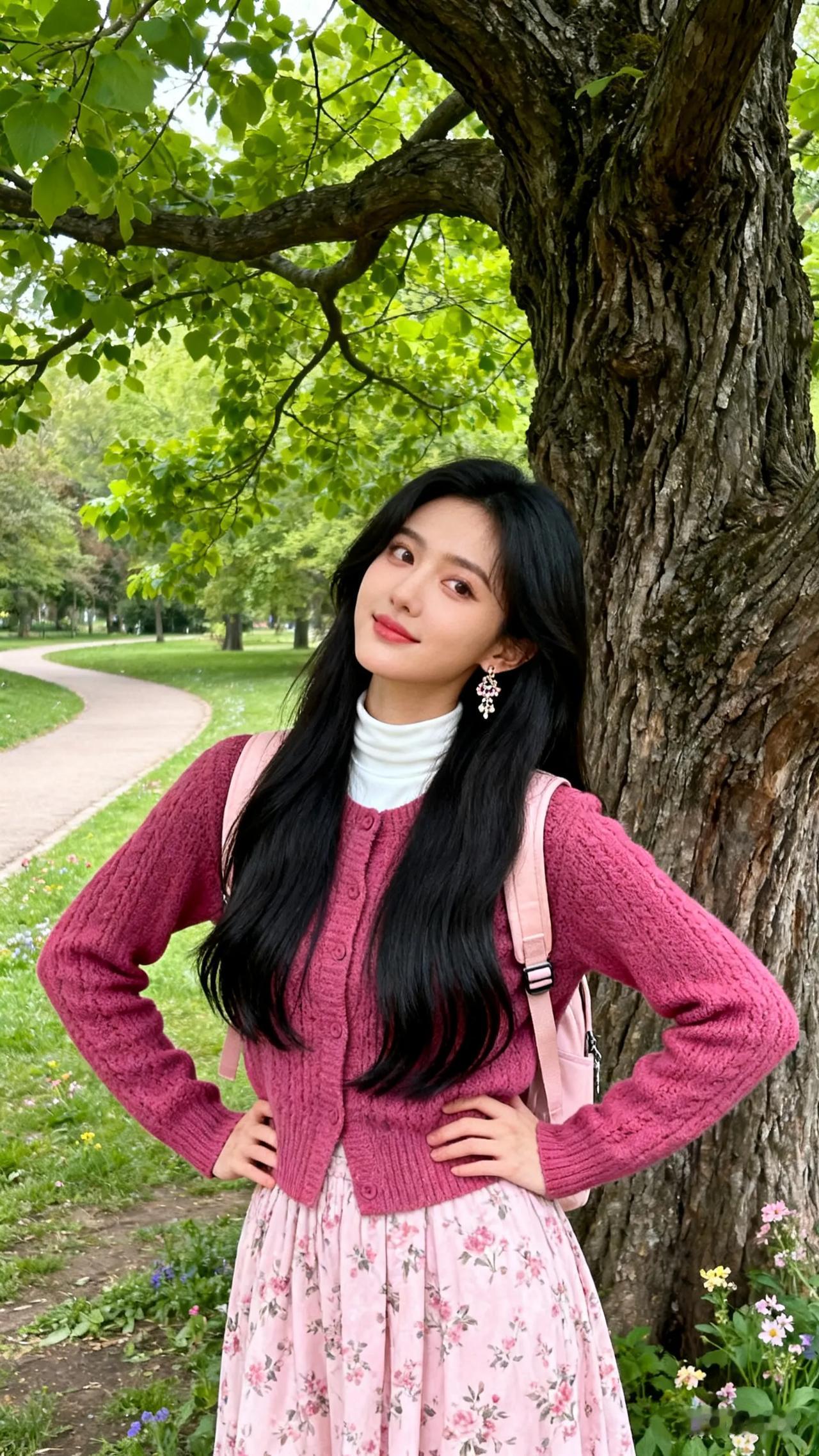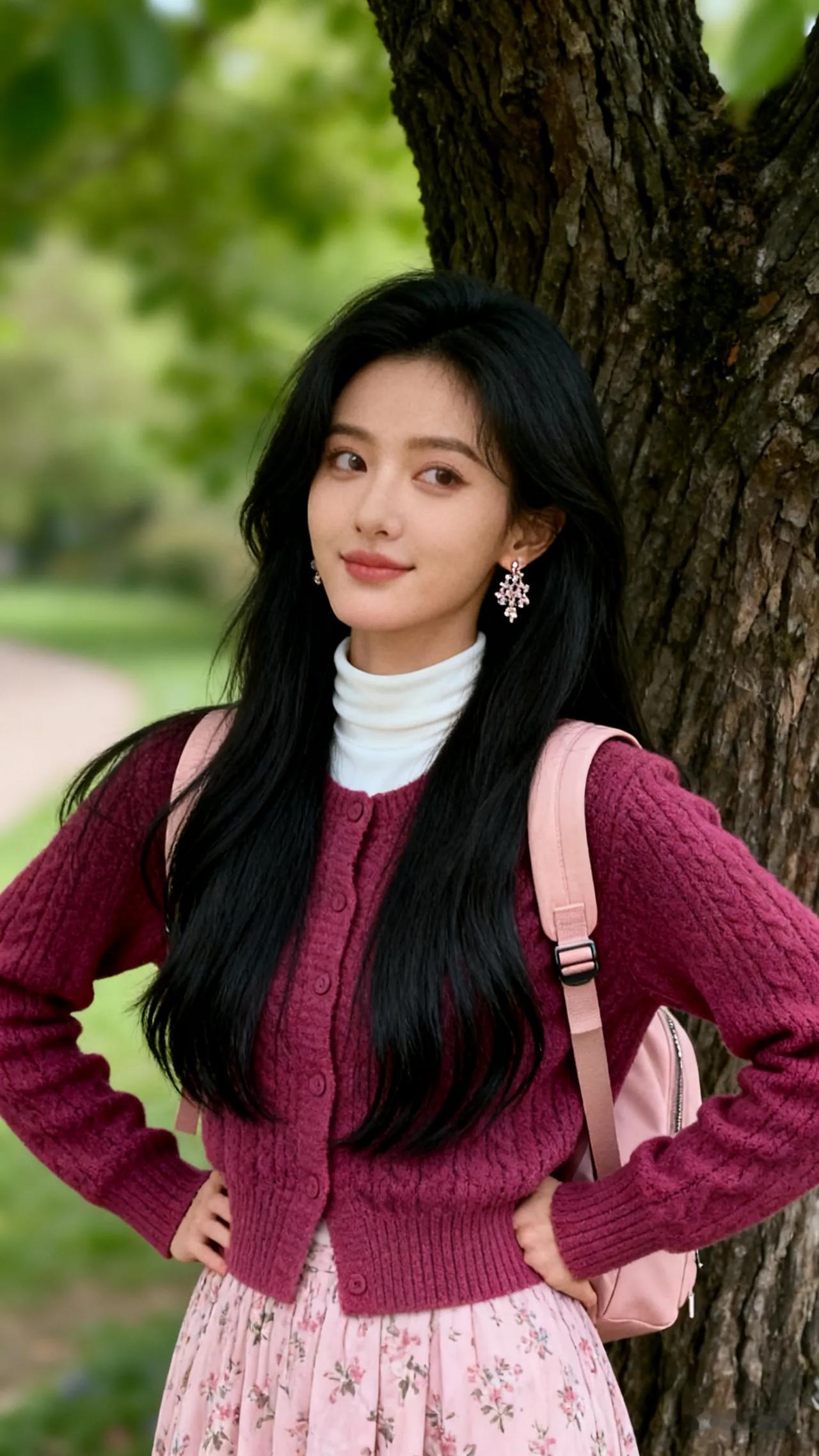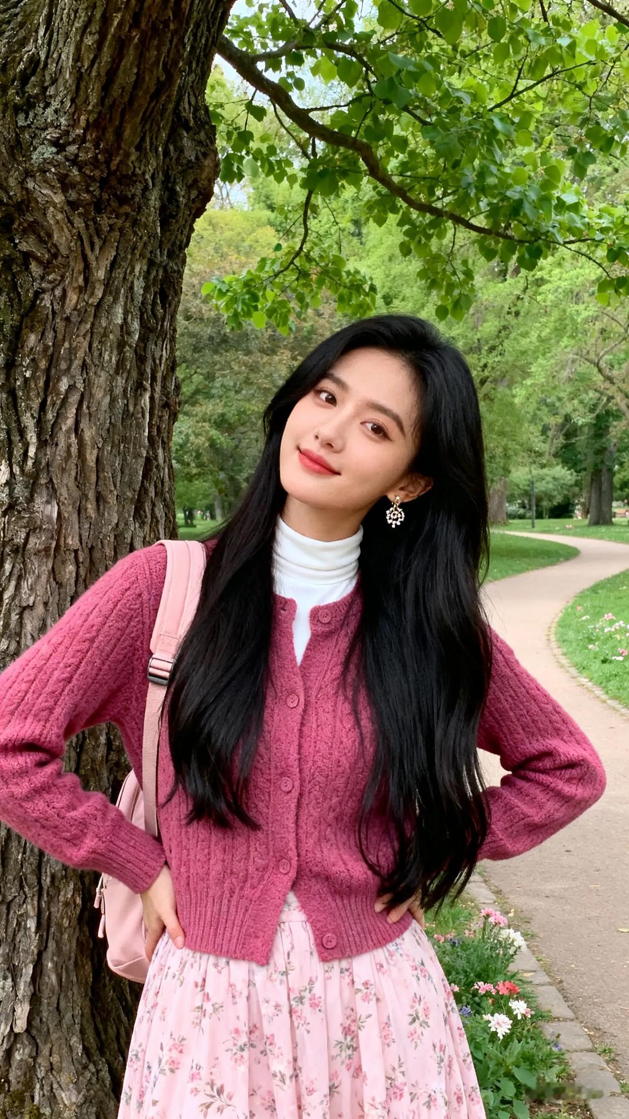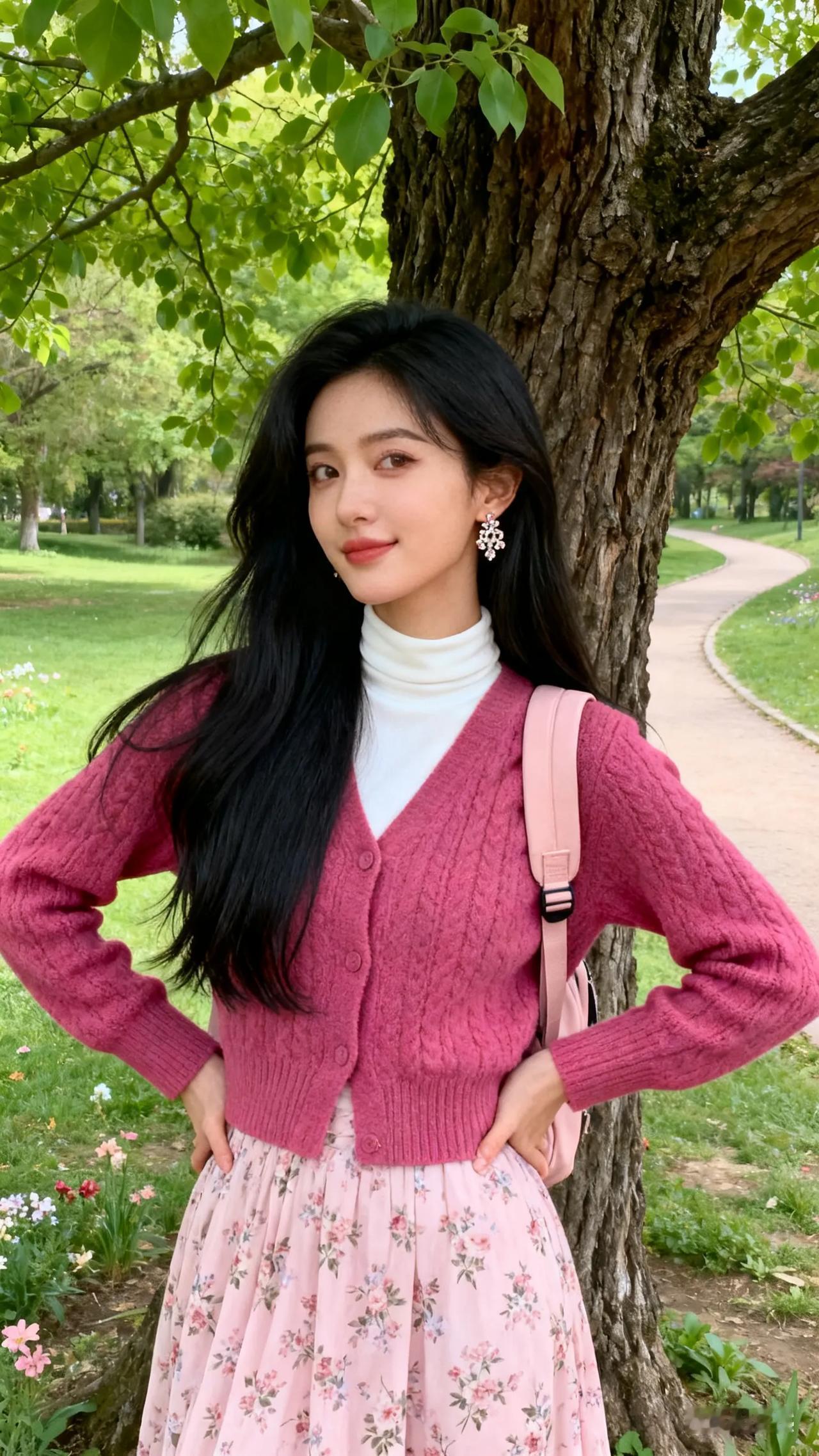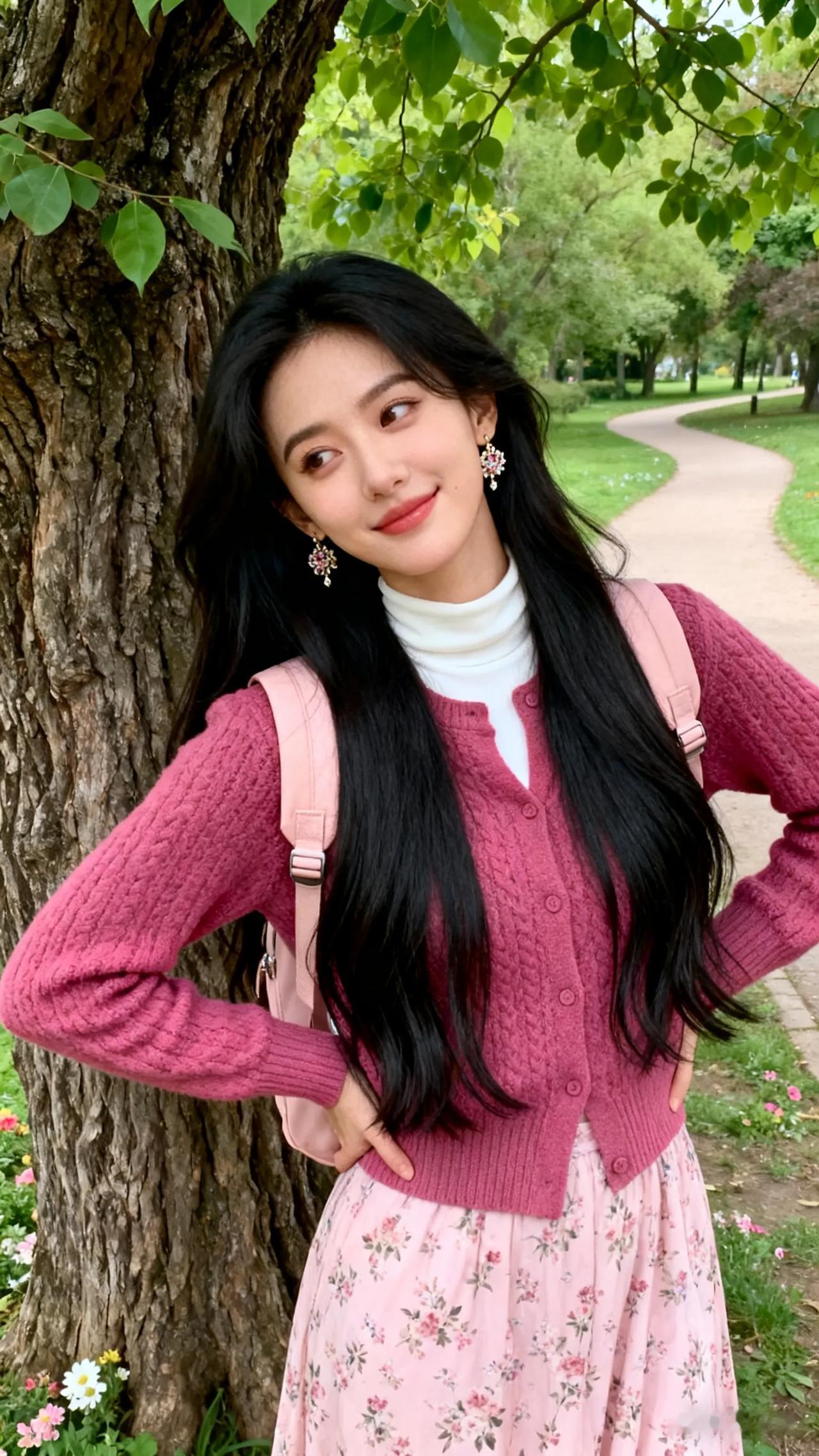 甜美校园风,粉色毛衣搭配白色高领衫,少女心满满!💕📚